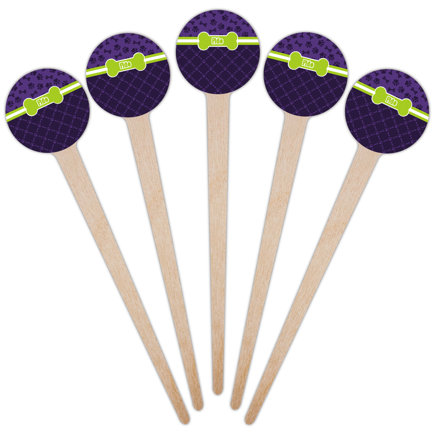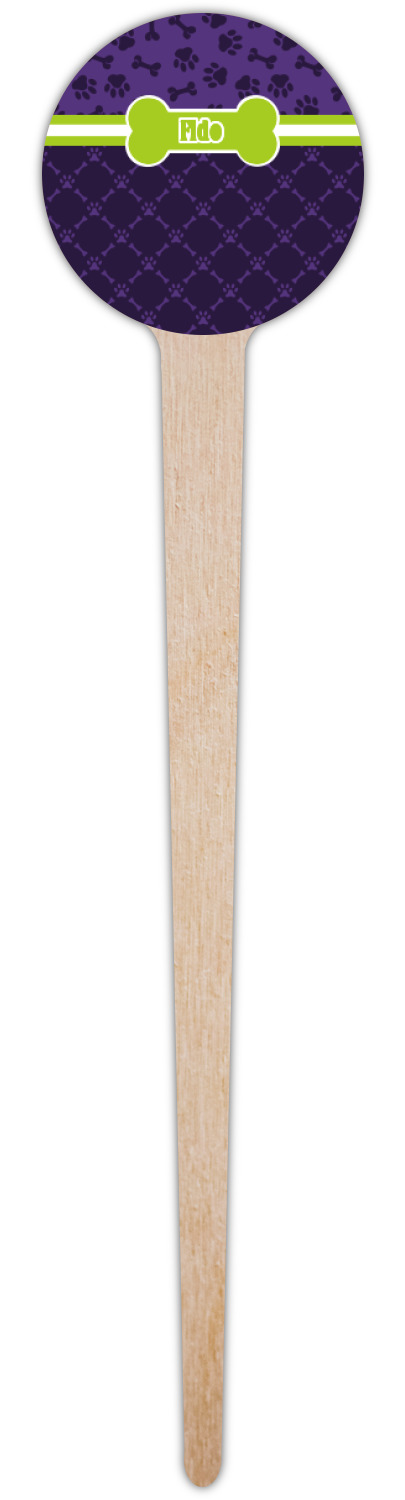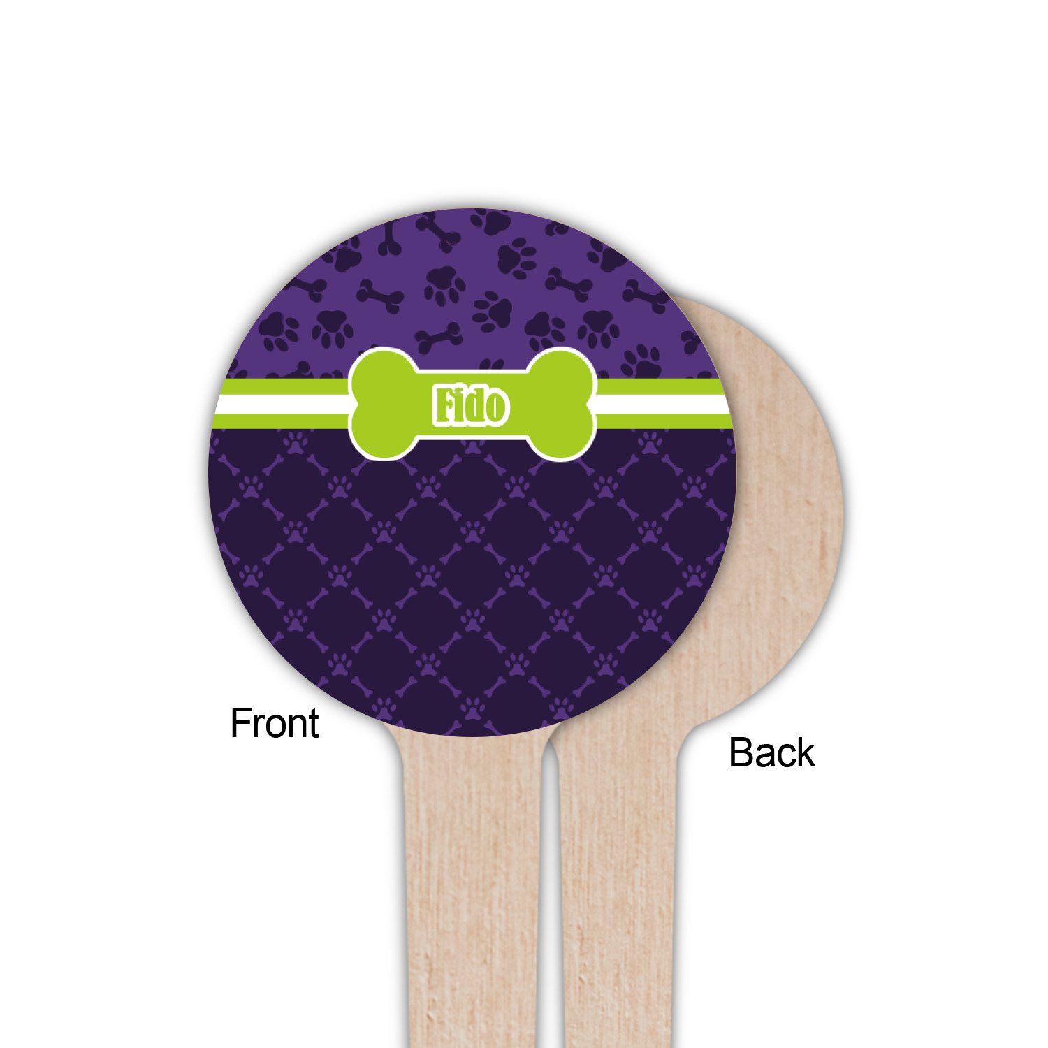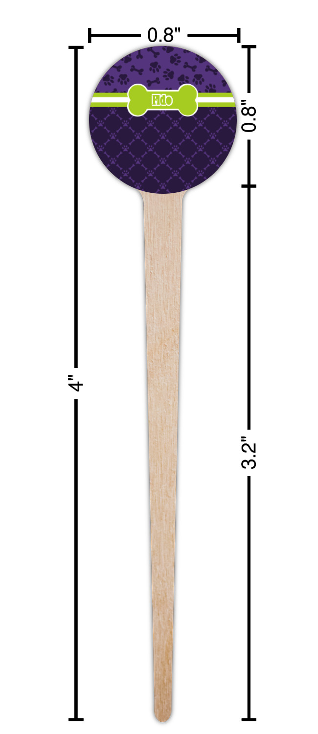 This design is a dark purple with light purple accents. It is divided into two different patterns that have bones and pawprints on them arranged in different ways. The dividing line, which is closer to the top, is made of a lime green and white ribbon. A label in the shape of a bone is on top with your pet's name right in the middle. The coordinating design has a fun sillhouette of a dog.