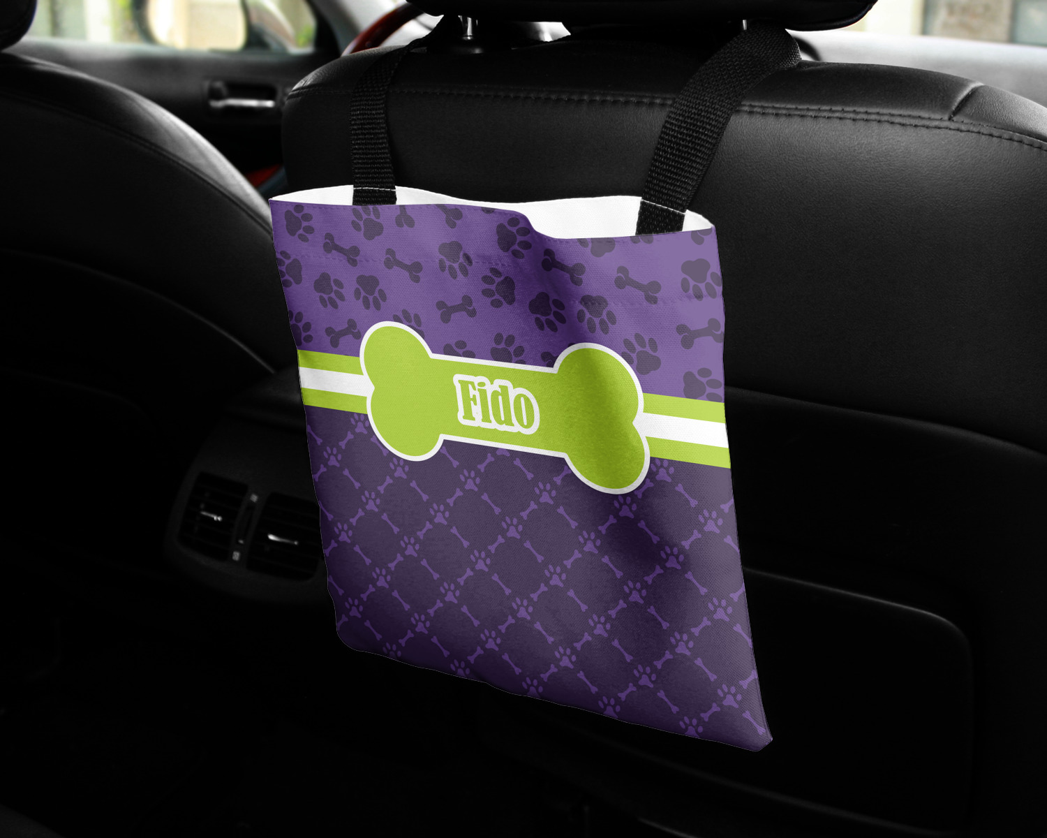 These car back seat organizers are sturdy tote-like bags, fabricated from a robust polyester, and features a single handle on the back side. The strap features an attachable velcro for easy attachment to headrests, grocery carts, car seats, and more. Simply undo the velcro, loop the strap around the headrest, reattach the velcro, and let the organizer hang from the front seat. These car organizers are the perfect means of increasing your backseat's legroom, while storing multiple items in one place for better accessibility. Each car back seat organizer measures at 10 by 10 inches, and features your personalized design printed across its front and back.