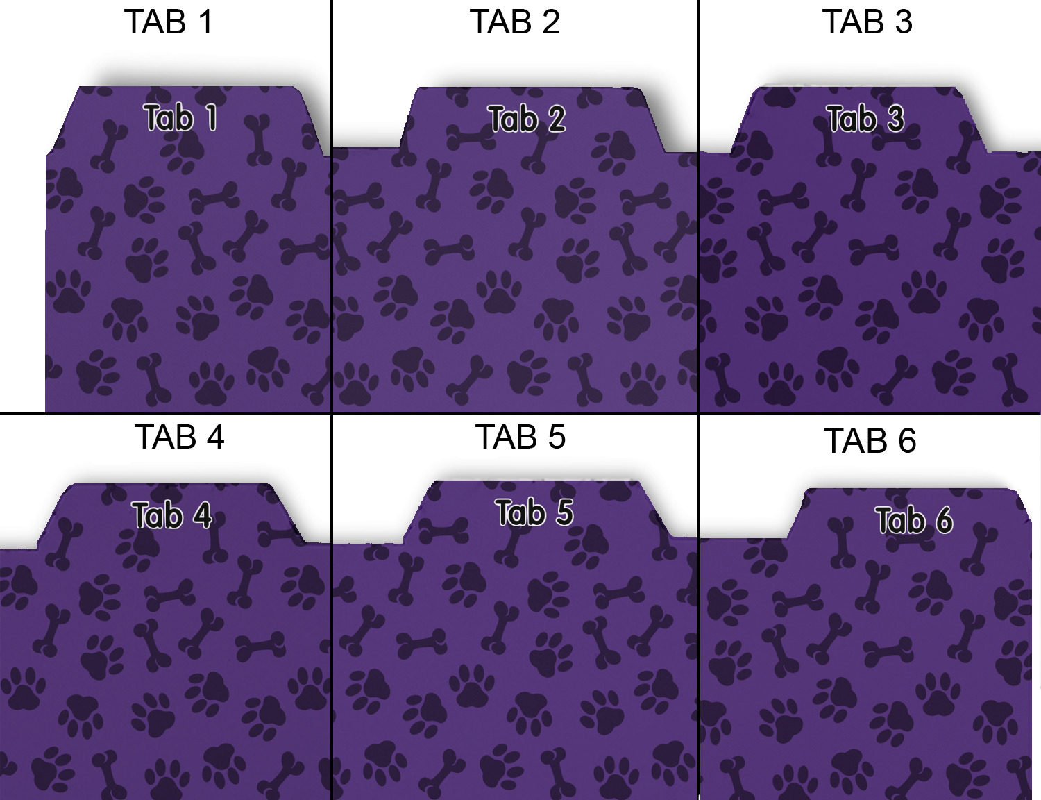 Made from a durable heavy weight card stock, these page dividers are printed on one side with your custom design. Customize the title on each tab as well as the background on each divider to make them unique to you. The possibilities are endless!