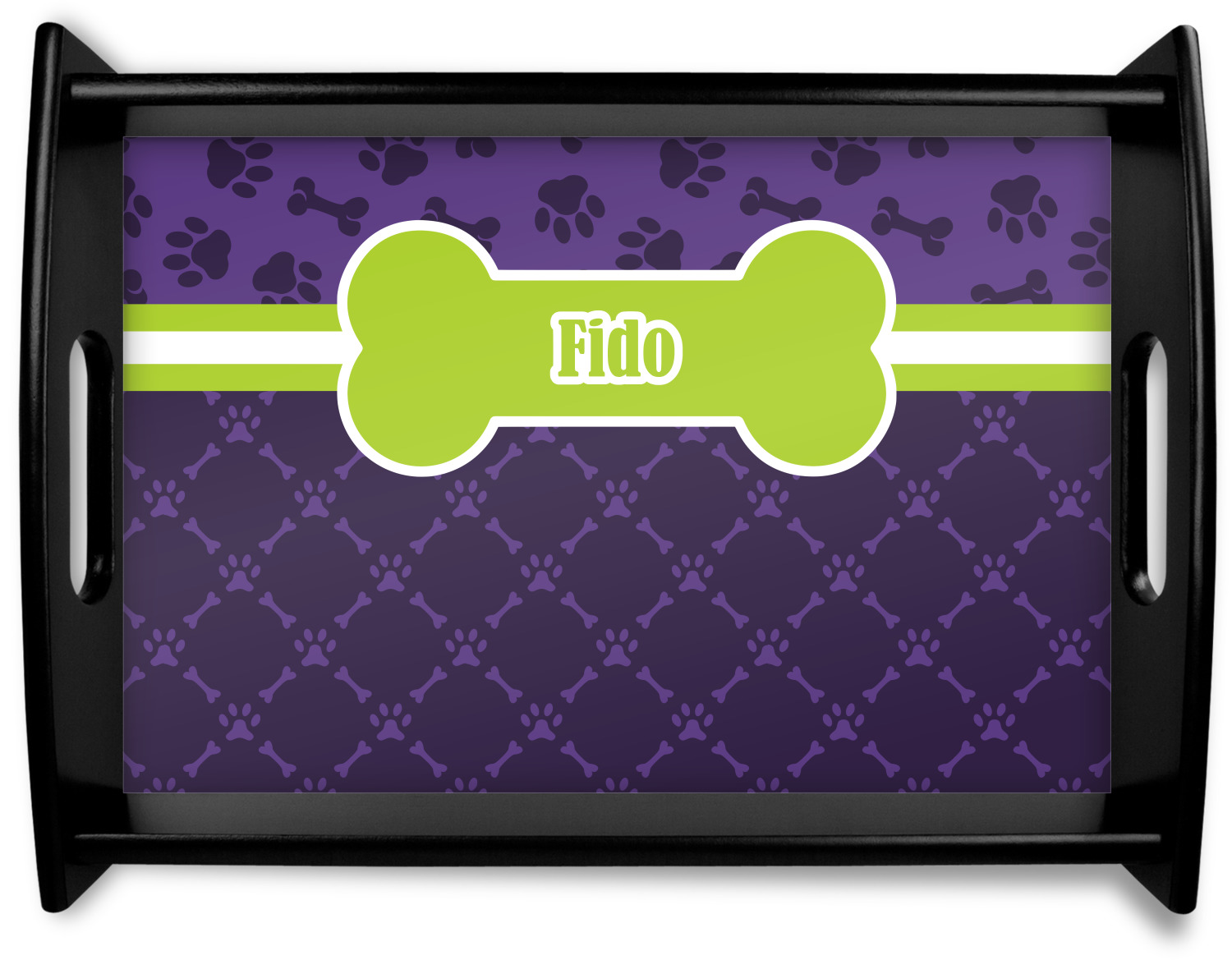 This serving tray with handles features square edges and two rounded sides, creating a very modern look. Each side is fabricated from a beautifully cut, natural wood. The bottom of the interior of the tray displays your customized design in bright, vibrant color. The tray is sold in both a black color and a natural wood look. Each variation of the wood serving tray has two sizes: Small, which is 14" x 10" x 2.25", and Large, which is 19.5" x 13.5" x 2.75".