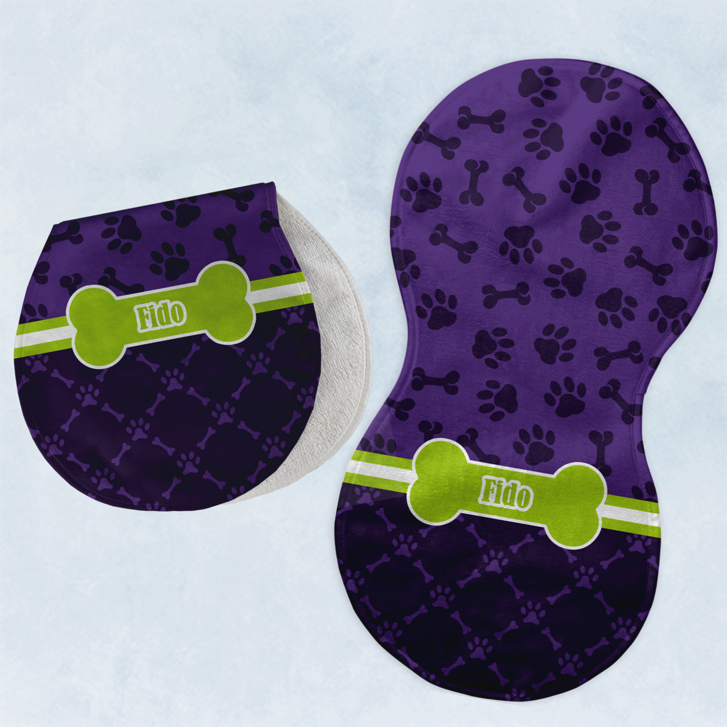 Choose your baby burp cloth from our two styles - Fleece (rectangular) or Microfiber Velour (peanut shape). The lightweight and absorbent design makes each burp cloth multipurpose; use them as a burp pad, a lap pad, a changing table, or a spare cloth to clean up any baby mess. Your customization is displayed across the front with baby-safe ink to ensure extra comfort with a white backing.
