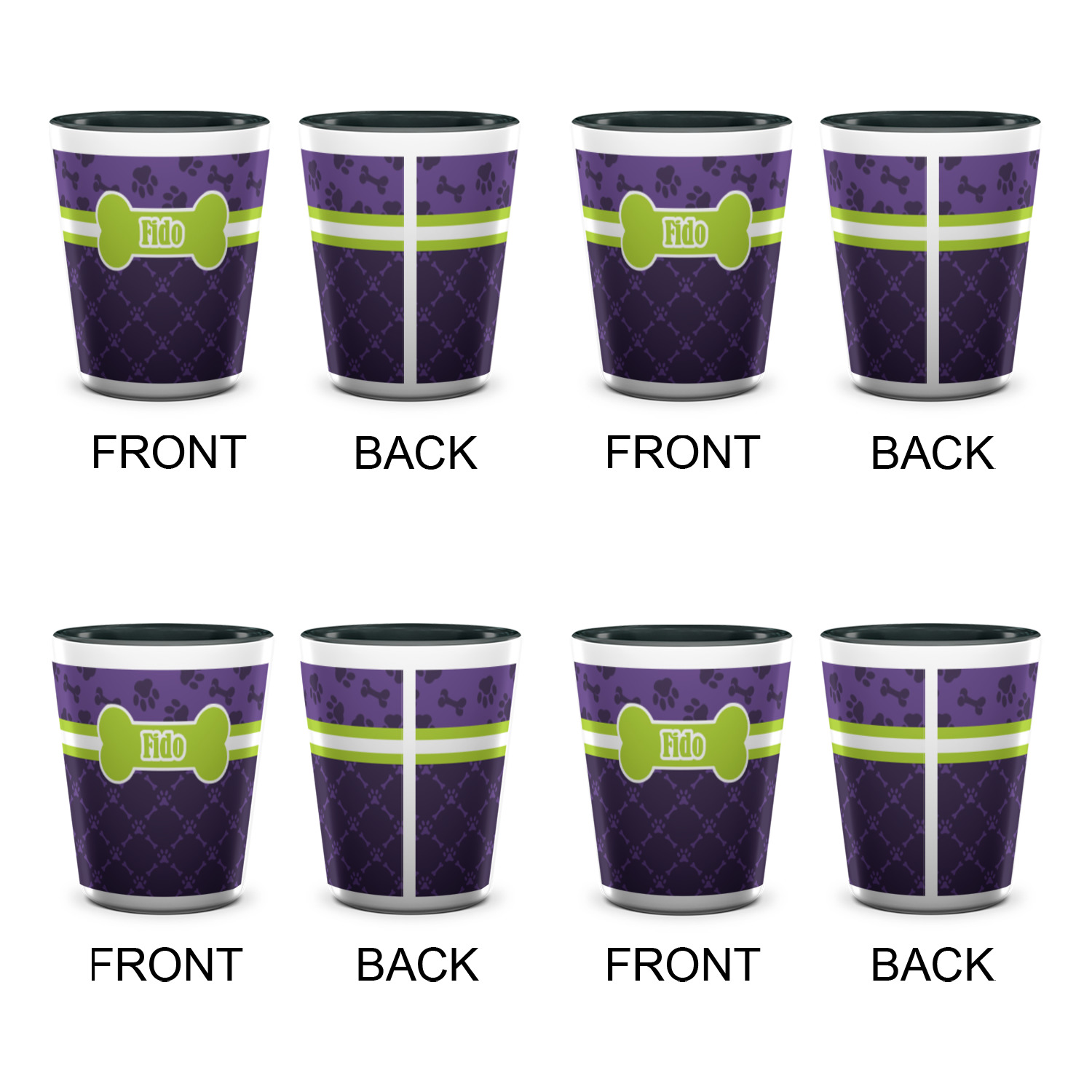 Made from ceramic these shot glasses are printed in full color with the design of your choice. These are a standard 1.5oz size and stand 2.25" tall. Available in a full white ceramic or a two-tone with a black color inside the shot glass. Buy a single or a set of 4, all of which can be designed separately to get you just what you want and need.