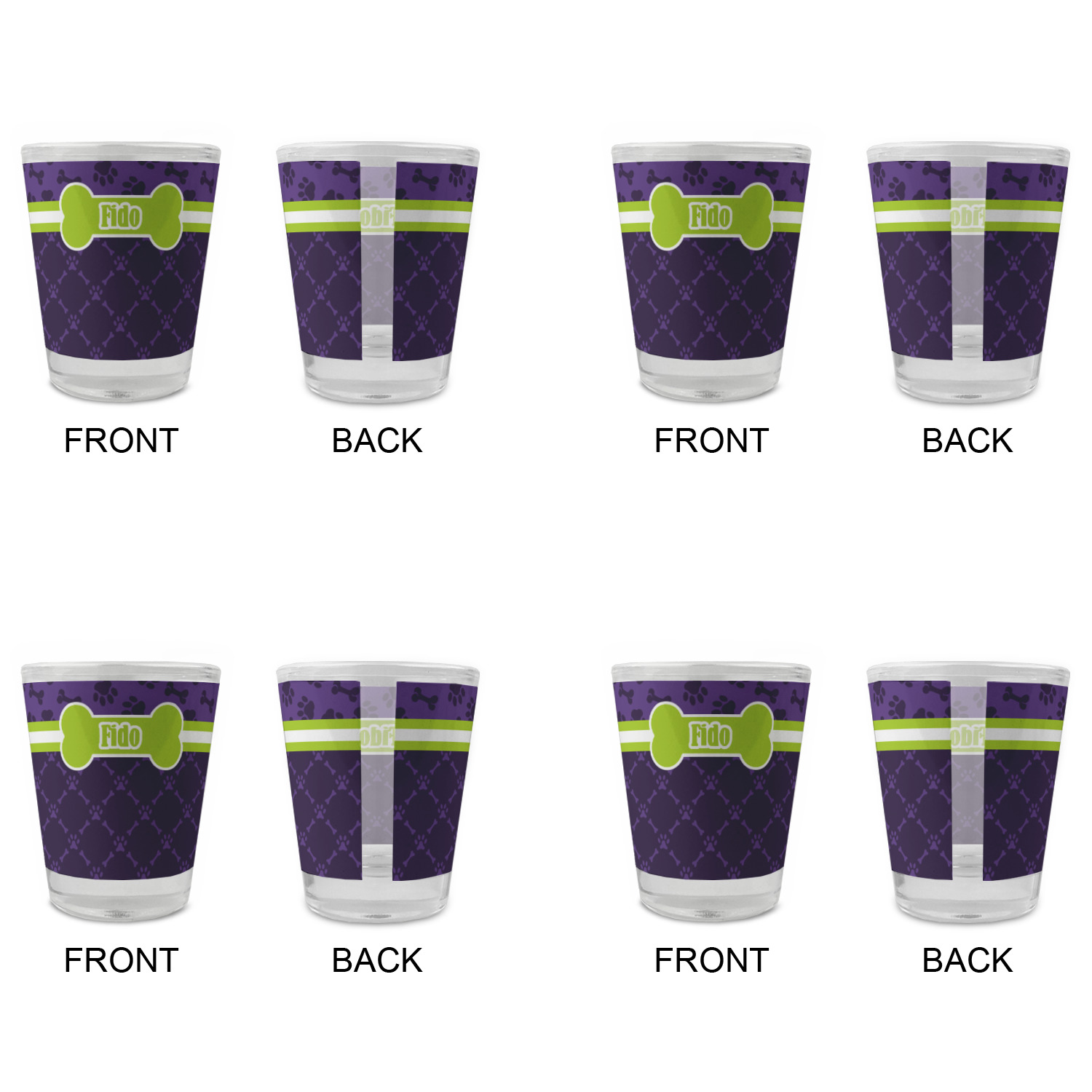 Made with frosted glass, these shot glasses are printed in full color with the design of your choice. They are a standard 1.5oz shot glass and are 2.4" tall. The print is wrapped around the shot glass in a full wrap and boldly displays your customization.