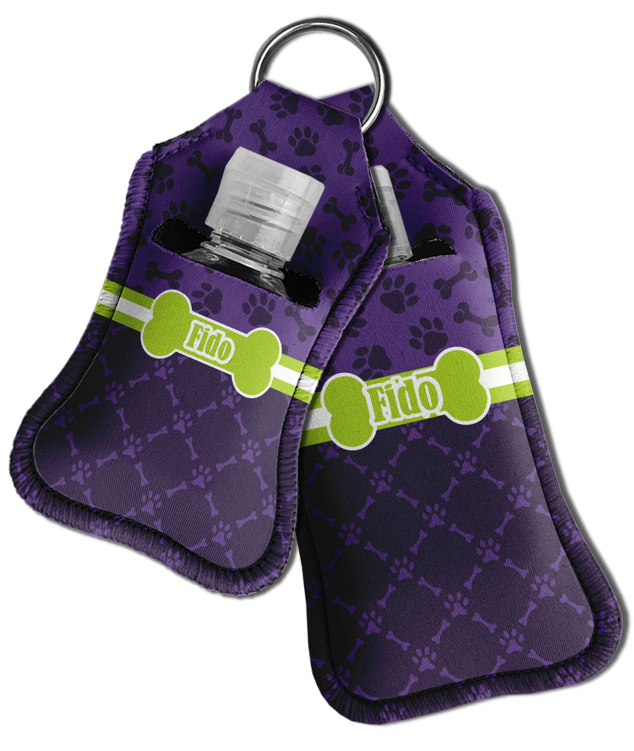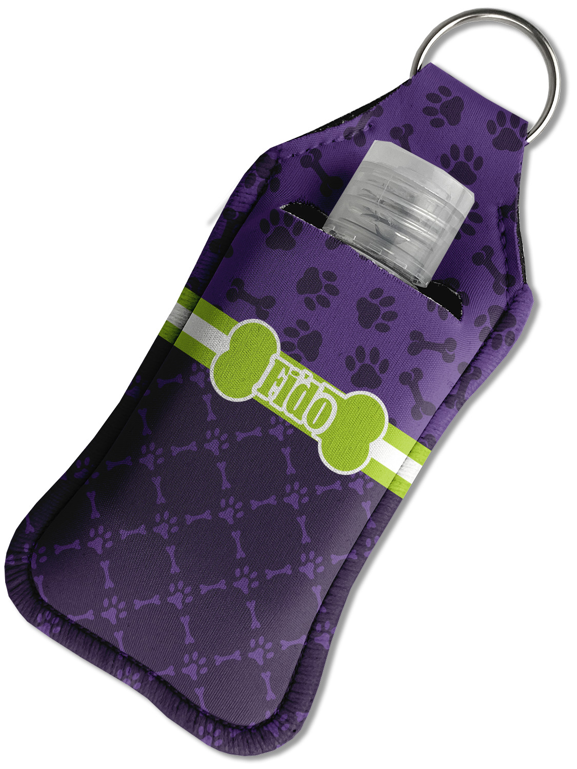 Each hand sanitizer holder comes with its own empty travel-sized, refillable hand sanitizer sure to fit snug in your customized sanitizer case! Our hand sanitizer cases are a durable, yet soft neoprene material sure to last any daily activities or travel agenda. Customize and personalize a hand sanitizer bottle holder with one of our two sizes - small (4.25" x 2.25") or large (5.5" x 2.5"). Each travel sanitizer holder comes with a keyring for attachment on bags, keys, or more!