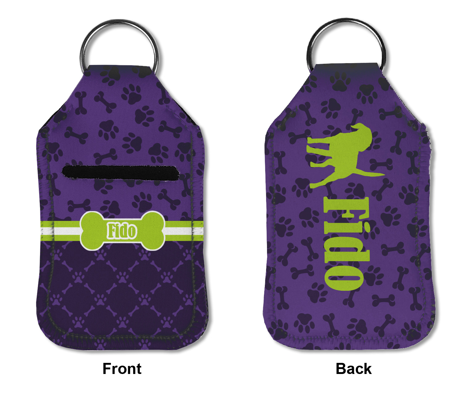 Each hand sanitizer holder comes with its own empty travel-sized, refillable hand sanitizer sure to fit snug in your customized sanitizer case! Our hand sanitizer cases are a durable, yet soft neoprene material sure to last any daily activities or travel agenda. Customize and personalize a hand sanitizer bottle holder with one of our two sizes - small (4.25" x 2.25") or large (5.5" x 2.5"). Each travel sanitizer holder comes with a keyring for attachment on bags, keys, or more!