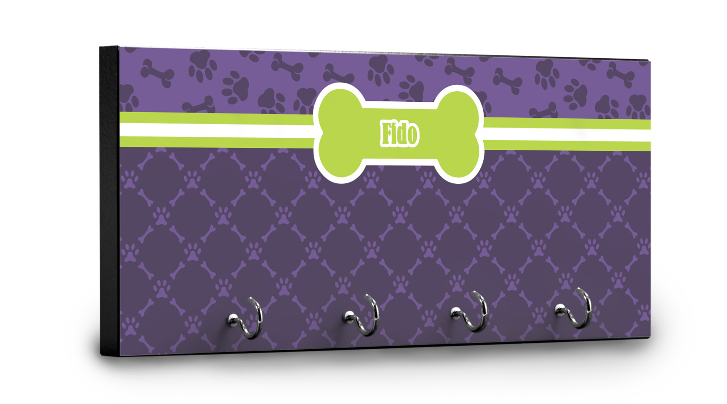 This 11" x 5" key hanger is made of sturdy wood and has four metal hooks lining the bottom. This is the perfect size for a family with several drivers. Not only can you hang keys on it though, but pet leashes and other small items. The board is black on the sides and back and is printed with the design of your choice on the front.