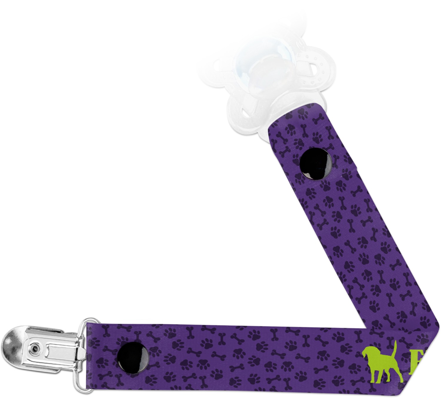 This personalized pacifier clip is the ideal size and measures at approximately 7.5 inches in length, when either end is snapped closed. On one end, you'll find a snap button. This button of your baby's pacifier holder is what can be attached to their pacifier to hold is securely in place. Simply open the snap, slip it through the pacifier opening, and snap it back into place. On the opposite end of this baby pacifier holder, you'll find a metal clip that can secure to a baby's collar or sleeve. This clip ensures that the strap stays in place, and that your baby's pacifier is always on hand.