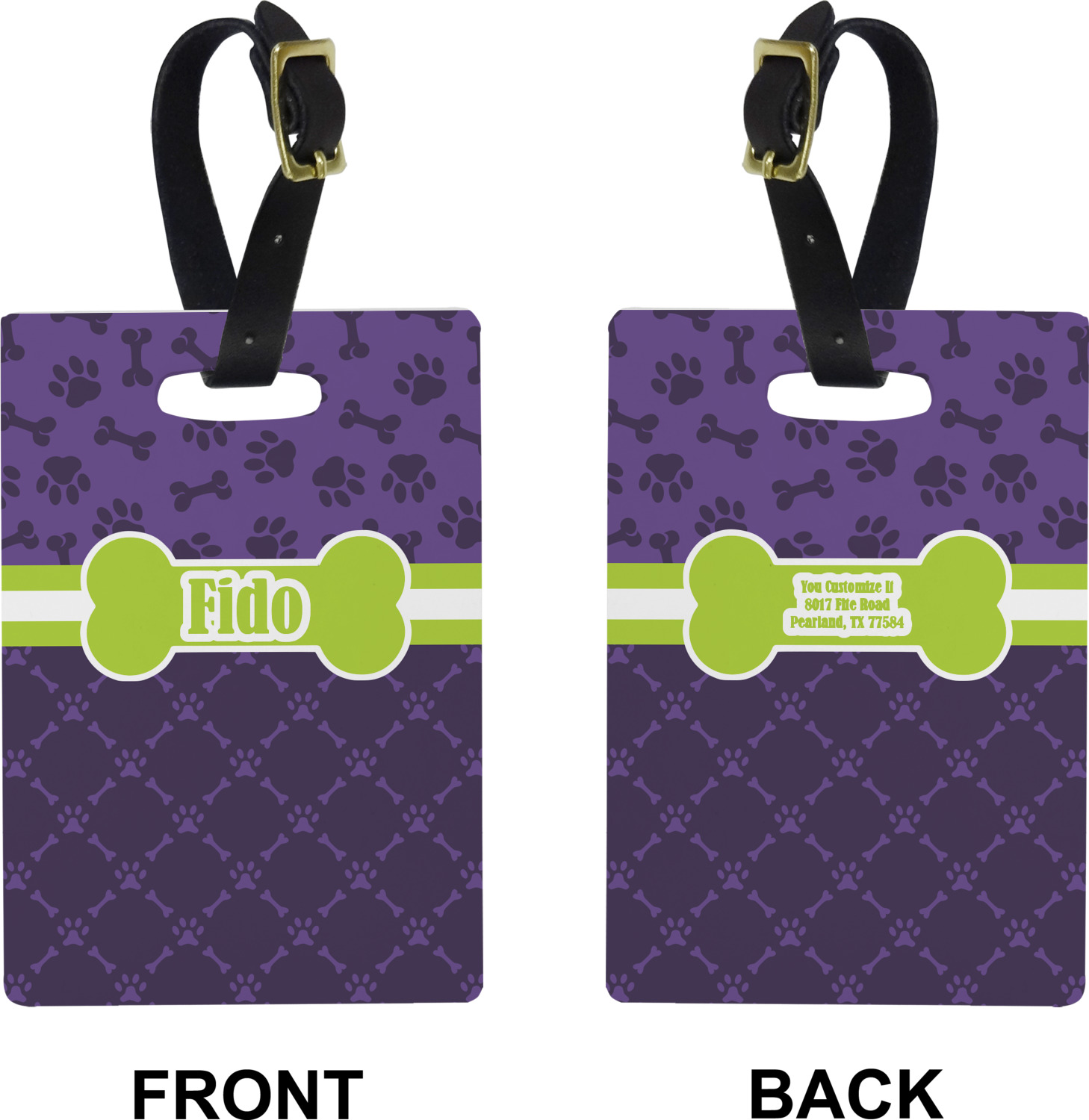 These cute luggage tags are made of a fiber-reinforced, UV-resistant plastic, making them waterproof and durable enough for both everyday use and the rugged adventures of any traveler! A leather strap with holes and a buckle is included with your purchase and can be used to attach your custom luggage tag to any suitcase, backpack, or duffel bag. You can design these travel tags as you wish; your customization will be displayed across the front, while the back will show as little or as much personal information as you want.