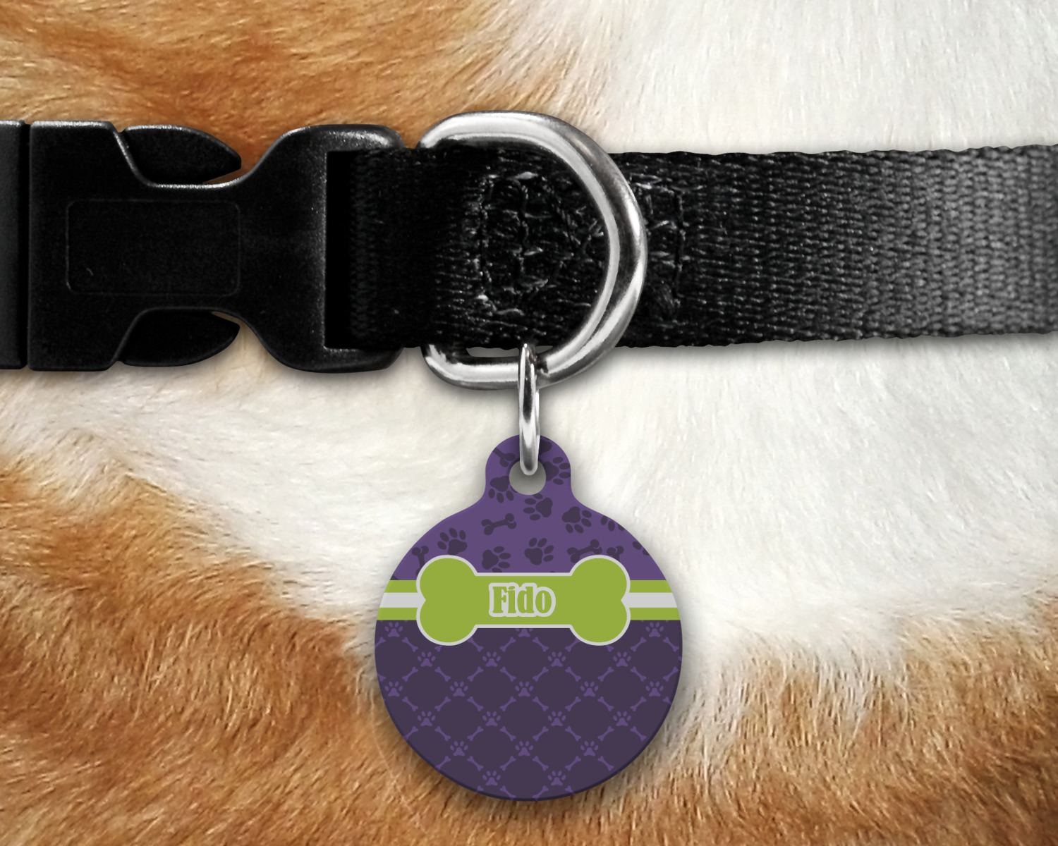 Go ahead; skip the monotony of plain pet ID tags with your very own, customized & personalized, round pet tag! This pet ID tag, fitting for both cats and dogs, will catch the eye of any onlooker (humans, canines, and felines, alike!) and accentuate your pet's individual personality.