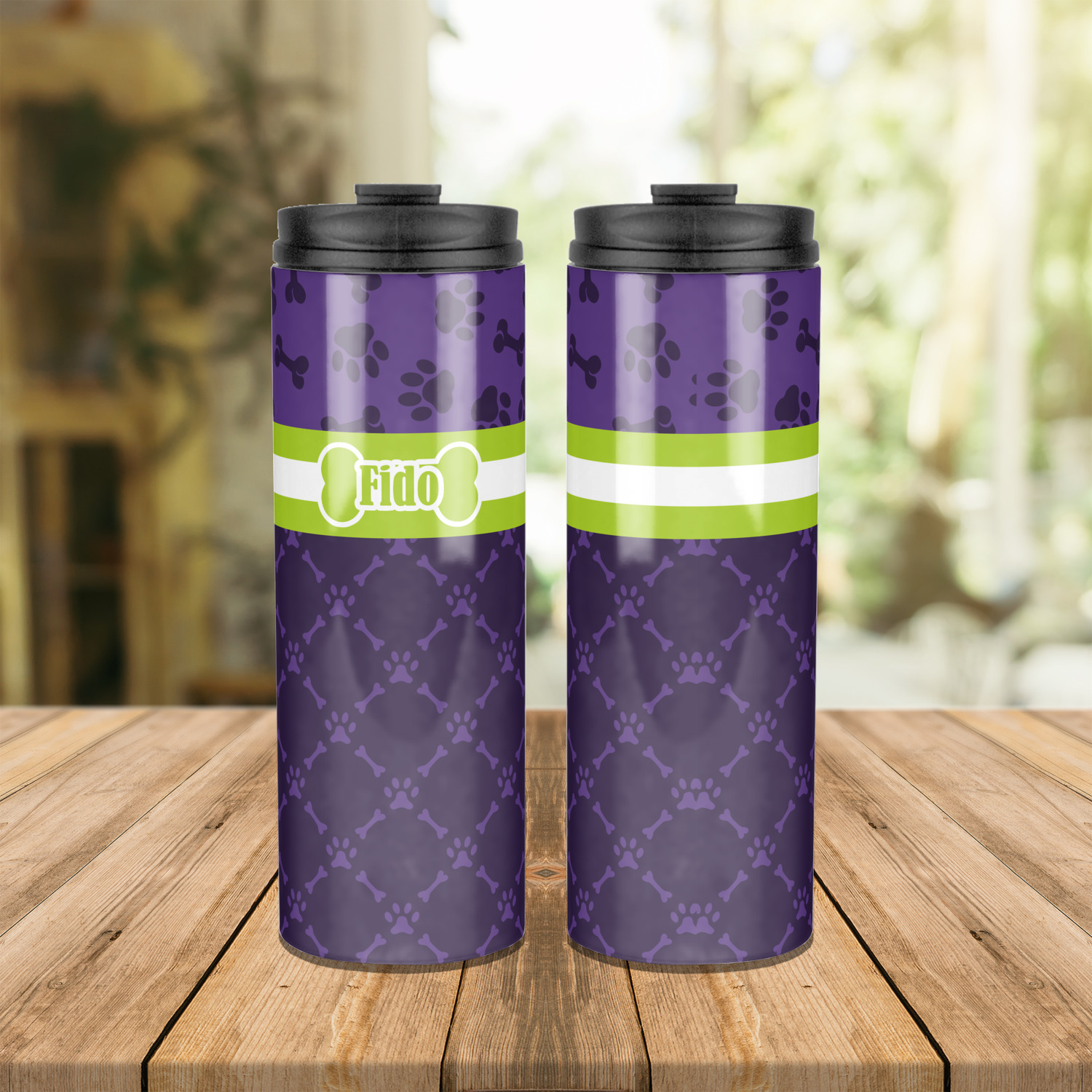 Sip your favorite drink on the go with your own custom stainless steel tumbler! Our slim cylinder shape is perfect for holding your drink in hand, in your purse, or in your backpack! This sleek and modern tumbler is a perfect gift for coffee and tea lovers keeping their drinks just the right temperature throughout the day! We offer two sizes, a 16 oz. or 20 oz., to personalize. Browse and customize or design or create your own with our online design studio!
