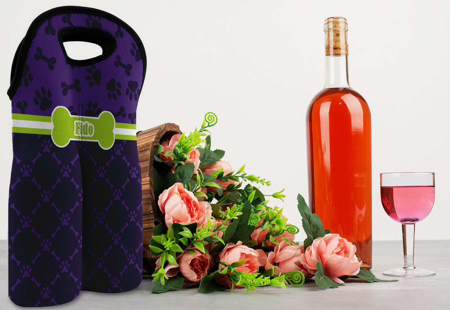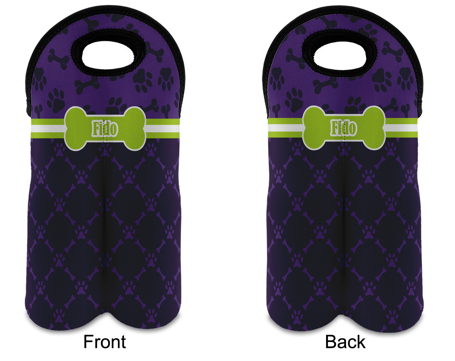 These tote bags are insulated to keep the bottles cold and have a stitched separation down the middle and double handles to keep the two bottles safe and secure during travels.