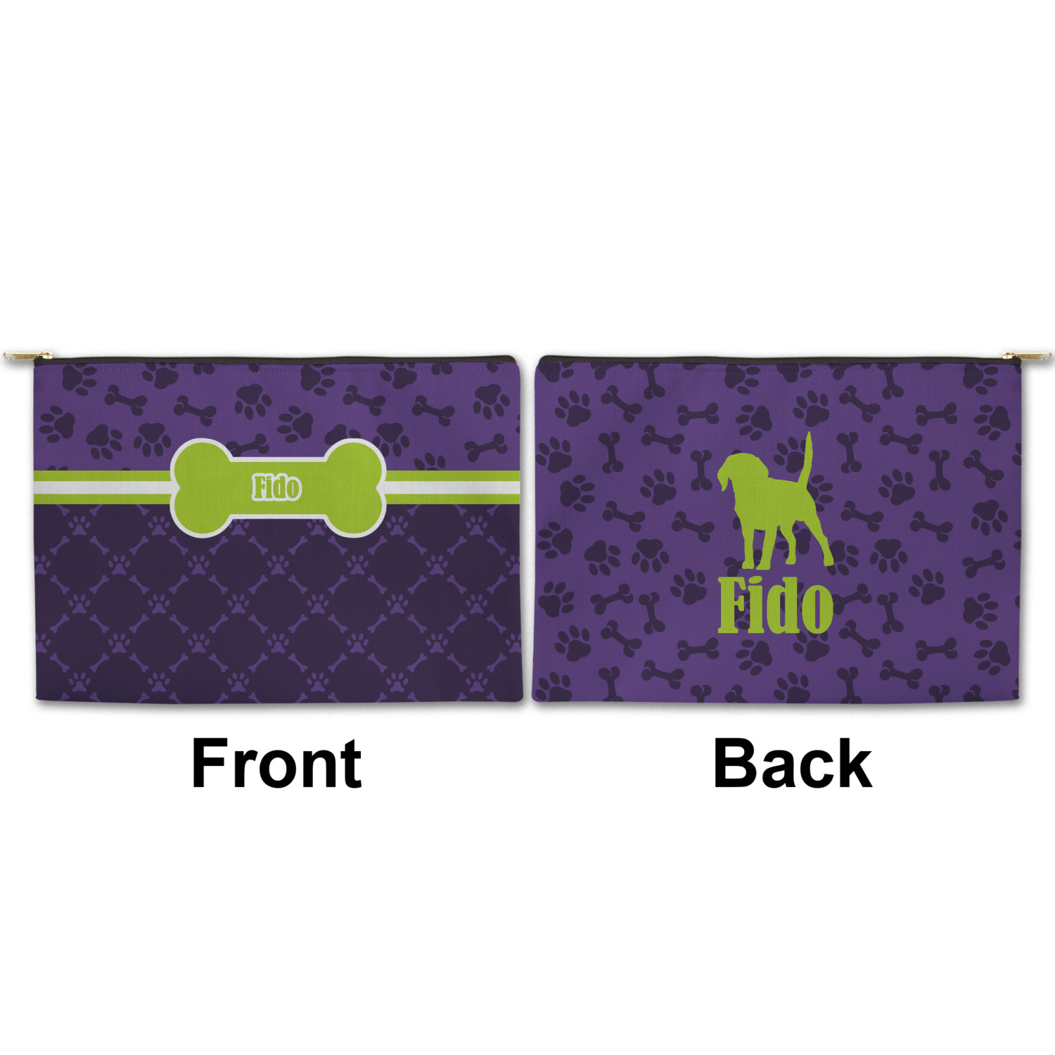 You can design both the front and the back of the pouch - same design, two complementary designs or two totally different designs - the choice is yours! We offer many different personalization styles i.e. name, name & initial, monograms - so the choice to personalize is also yours.