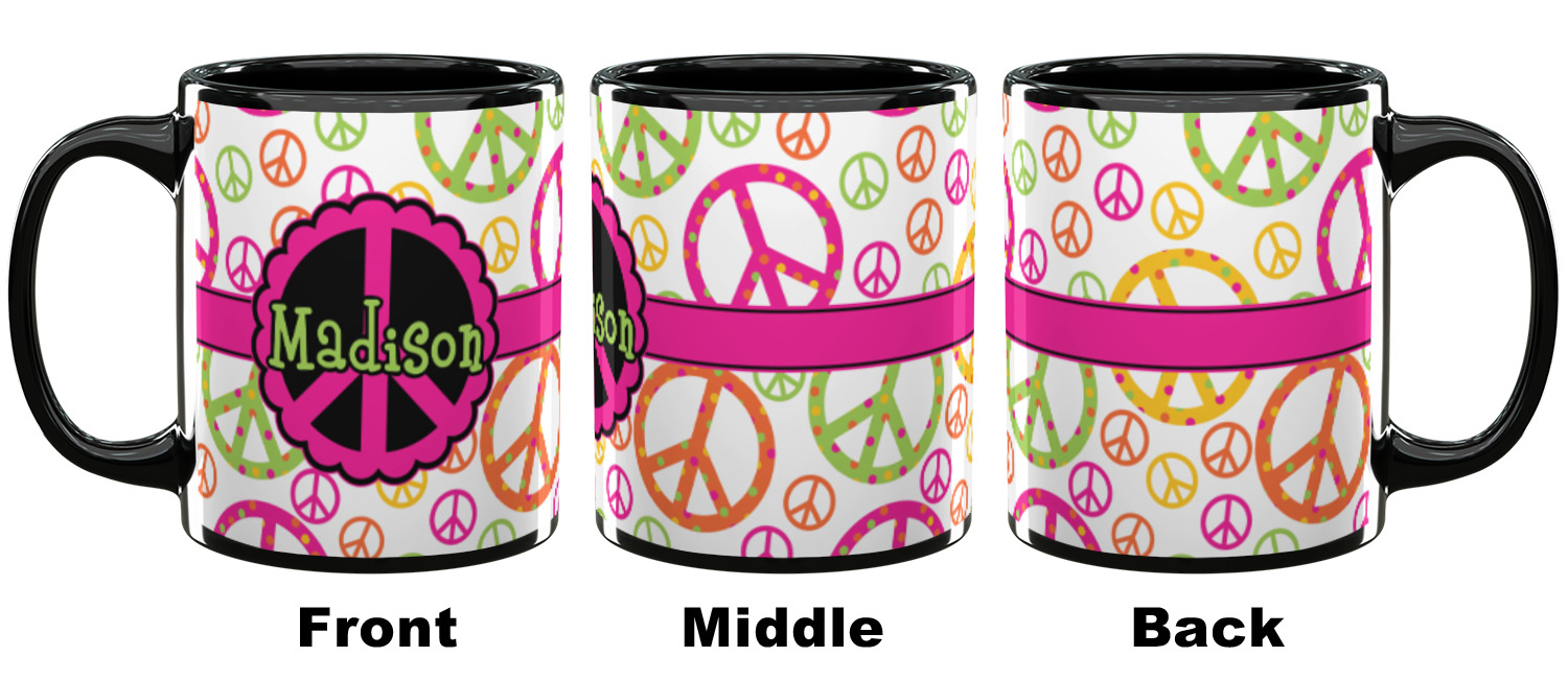 Our ceramic mugs have your design or photo printed along the surface with a gloss finish. The ceramic material of our mugs is dishwasher and microwave safe so you can reheat your tea or coffee if needed! We offer two different base colors with multiple mug sizes. The white ceramic mugs come in three size options - 11 oz., 15 oz., and 20 oz. Our black ceramic mugs are sold in either 11 oz. or 15 oz. sizes.