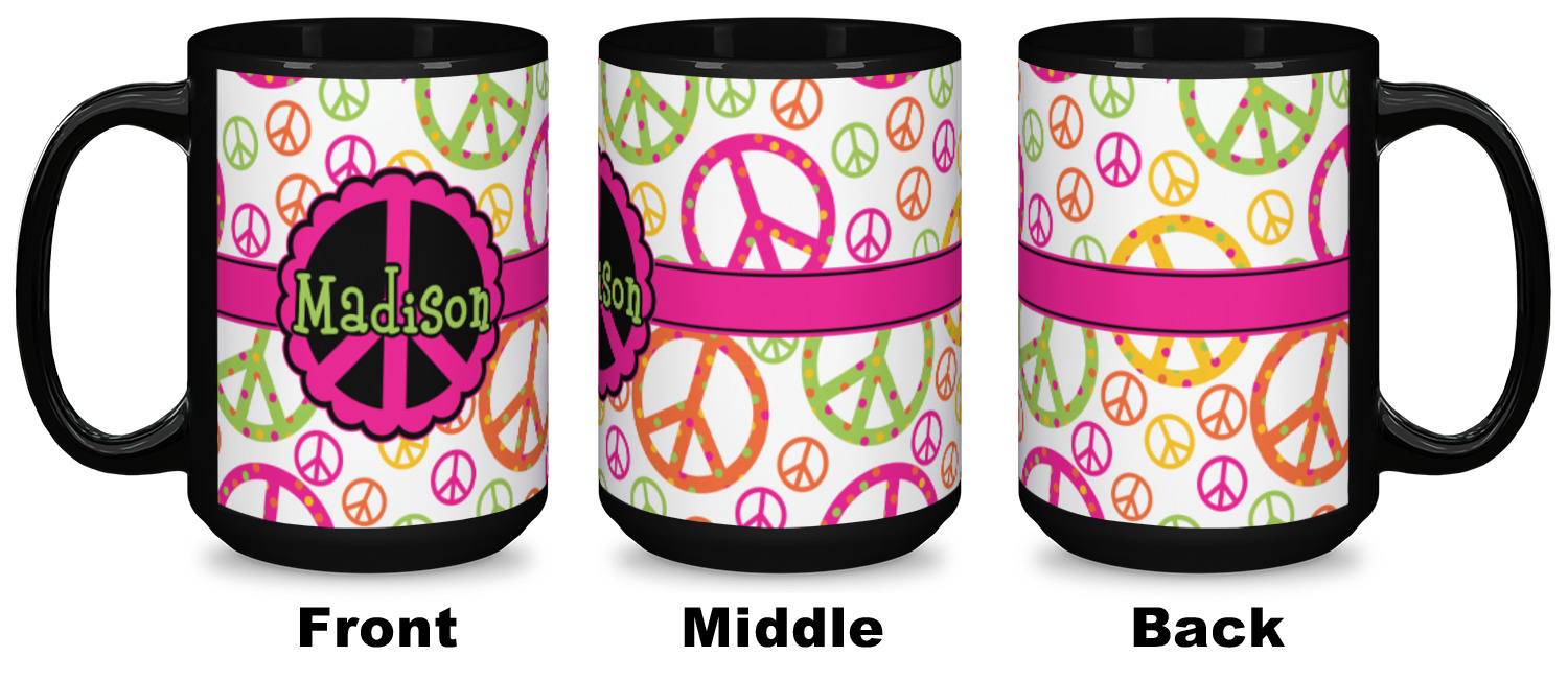 Our ceramic mugs have your design or photo printed along the surface with a gloss finish. The ceramic material of our mugs is dishwasher and microwave safe so you can reheat your tea or coffee if needed! We offer two different base colors with multiple mug sizes. The white ceramic mugs come in three size options - 11 oz., 15 oz., and 20 oz. Our black ceramic mugs are sold in either 11 oz. or 15 oz. sizes.