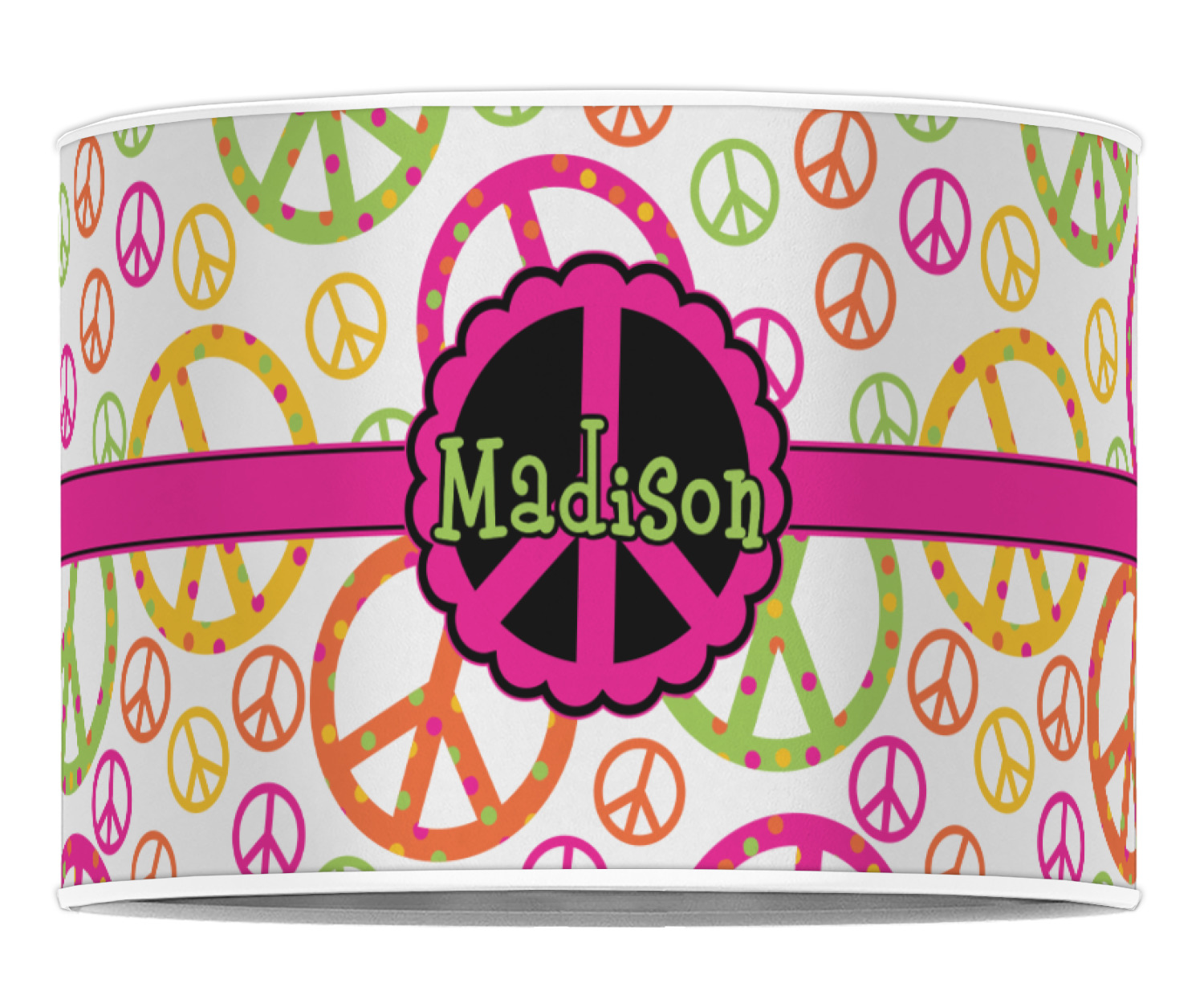 Our personalized drum lamp shades are available in 2 different materials: Poly-film or fabric. Poly-film lamp shades come with the option of white or black border trims to best match your customized design. Fabric lamp shades are finished with a rolled edge for a clean modern look.