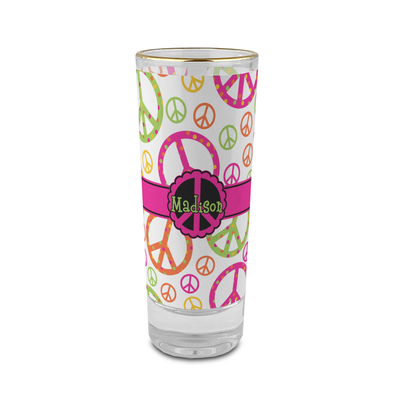 These glass shooter glasses are printed in full color with the design of your choice. These are a tall shooter 2 oz size and stand 4" tall. The print is a full wrap design to boldly display your personalization.