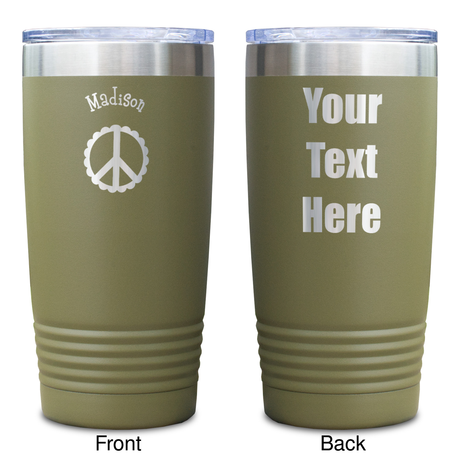 Available in 8 unique colors, these cups are crafted from 18/8 stainless steel and powder coated for their durable finish. With the 8 colors being Black, Pink, Red, Teal, White, Grey, Royal Blue, and Olive Green, you are sure to find a cup to fit your personality. You can chose to engrave on the front or the front and back of the cup. Use our design studio to design your own cup and we laser engrave it for you.