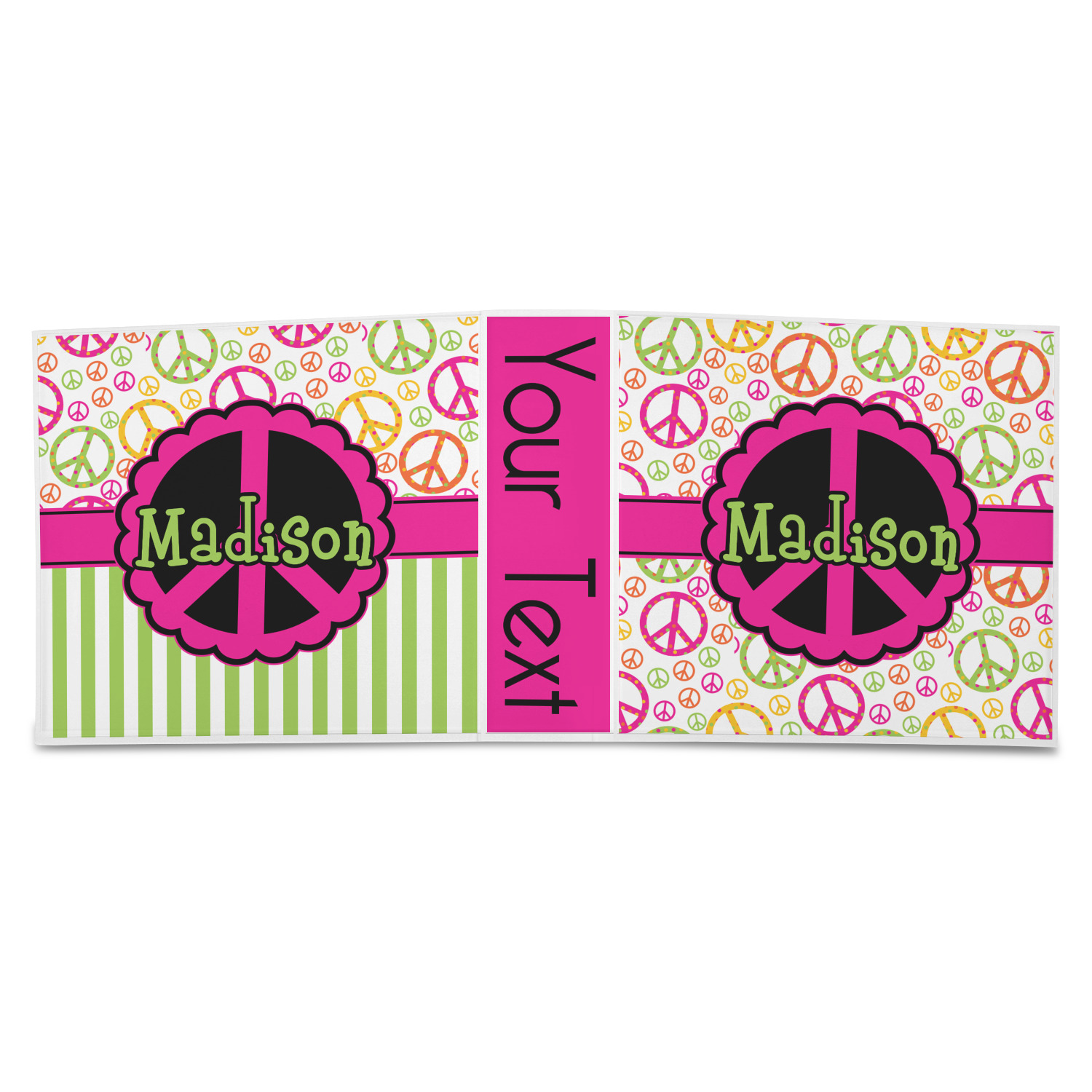 This design is totally groovy and will let the little hippie chick in you shine. Our peace sign design is simply adorable and has beautiful vibrant colors of pink, orange, lime green and yellow. The larger peace signs have fun polka dots and are surrounded by smaller solid colored peace signs.