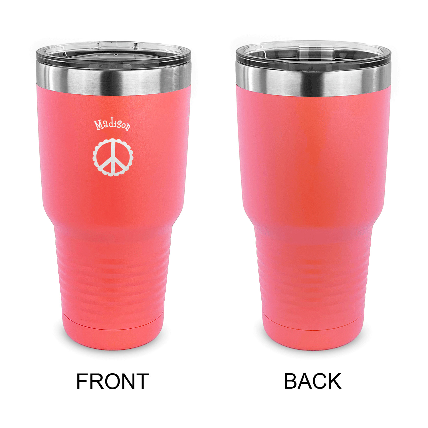 With the 5 colors - Black, Navy, Red, Pink and Coral, you are sure to find a cup to fit your personality. You can chose to engrave on the front or the front and back of the cup. Use our design studio to design your own cup and we laser engrave it for you.