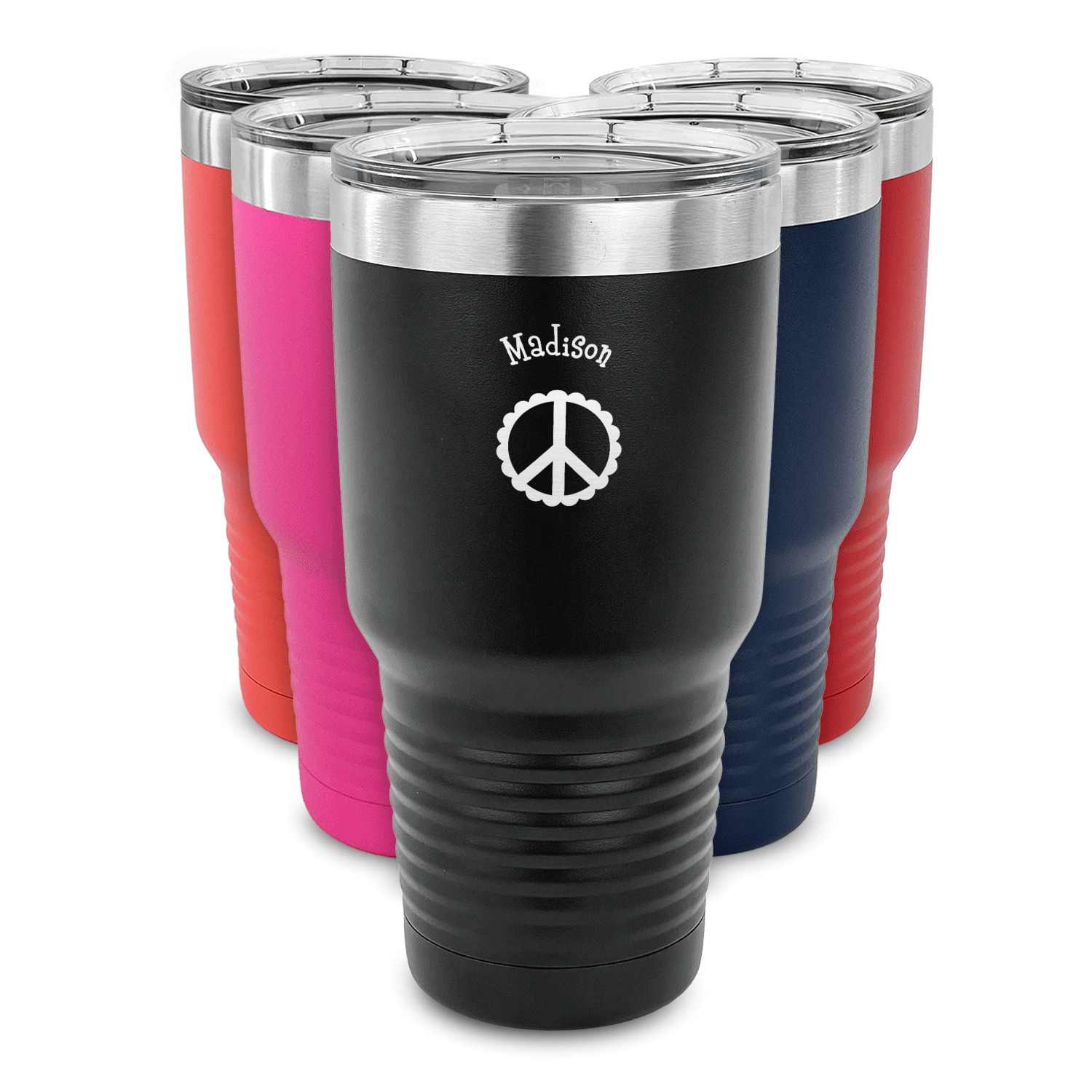 With our personalized 30 oz double wall stainless steel tumblers, you'll never have to settle for a plain, boring tumbler again! These tumblers will be a wonderful addition to your drinkware collection and will make those long commutes much brighter. Personalize one for yourself, or give these personalized tumblers as a gift to relatives, friends, or coworkers!
