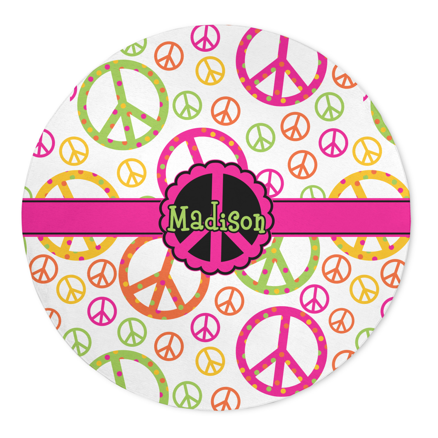 This design is totally groovy and will let the little hippie chick in you shine. Our peace sign design is simply adorable and has beautiful vibrant colors of pink, orange, lime green and yellow. The larger peace signs have fun polka dots and are surrounded by smaller solid colored peace signs.