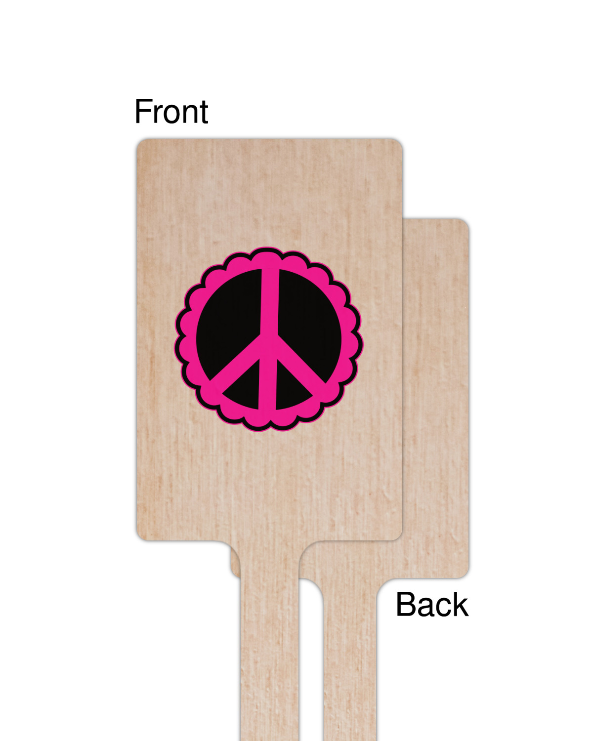 The design has a classic hot pink ribbon trimmed with black, and the label is a beautiful scalloped peace sign in black and hot pink. Personalize of your choice is done in a beautiful lime green color outlined in black.