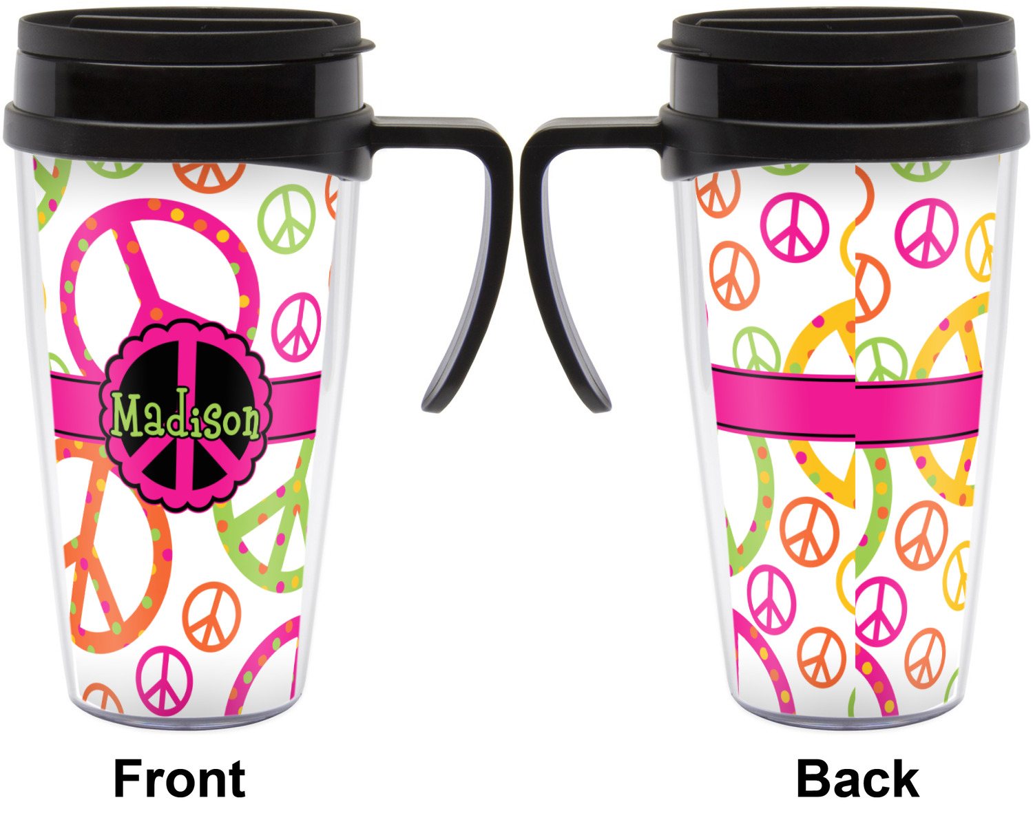 Keep your drink secure while on your daily commute with one of our personalized travel mugs! These travel mugs will add a splash of color and creativity to your kitchen counter-top, car cup holder, office desk, or wherever you choose to place them! With these custom mugs, you'll never have to settle for a boring, run-of-the-mill travel mug.