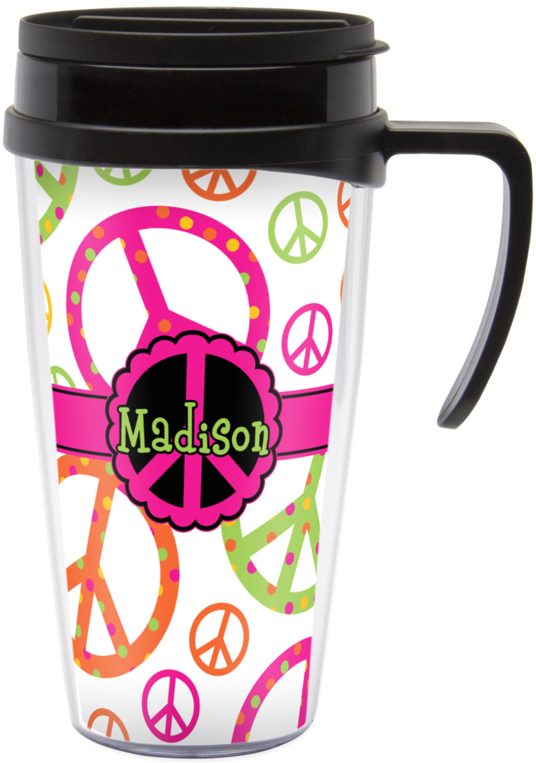 Keep your drink secure while on your daily commute with one of our personalized travel mugs! These travel mugs will add a splash of color and creativity to your kitchen counter-top, car cup holder, office desk, or wherever you choose to place them! With these custom mugs, you'll never have to settle for a boring, run-of-the-mill travel mug.
