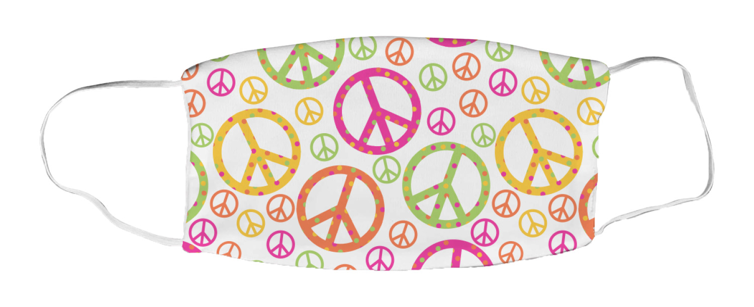 This design is totally groovy and will let the little hippie chick in you shine. Our peace sign design is simply adorable and has beautiful vibrant colors of pink, orange, lime green and yellow. The larger peace signs have fun polka dots and are surrounded by smaller solid colored peace signs.