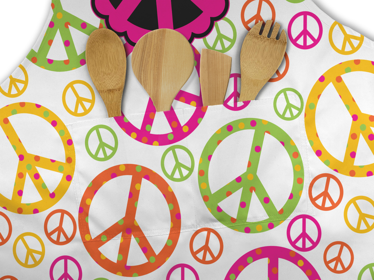 Our aprons are a lightweight yet durable polyester material. We offer two styles of aprons, one without pockets and one with two pockets adorning the center near the waistline. Each apron is one size* and comes with adjustable straps for both the neckline and waist. We print your custom design on the front of the apron to display your creativity!
