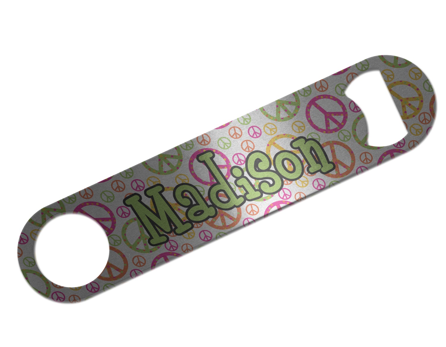 Stop struggling with the caps or your bottled beverages by purchasing one of our personalized bottle openers! These wrench-like custom bar blades are built to last. Customize one for your home's bar, or as a practical gift for a loved one!