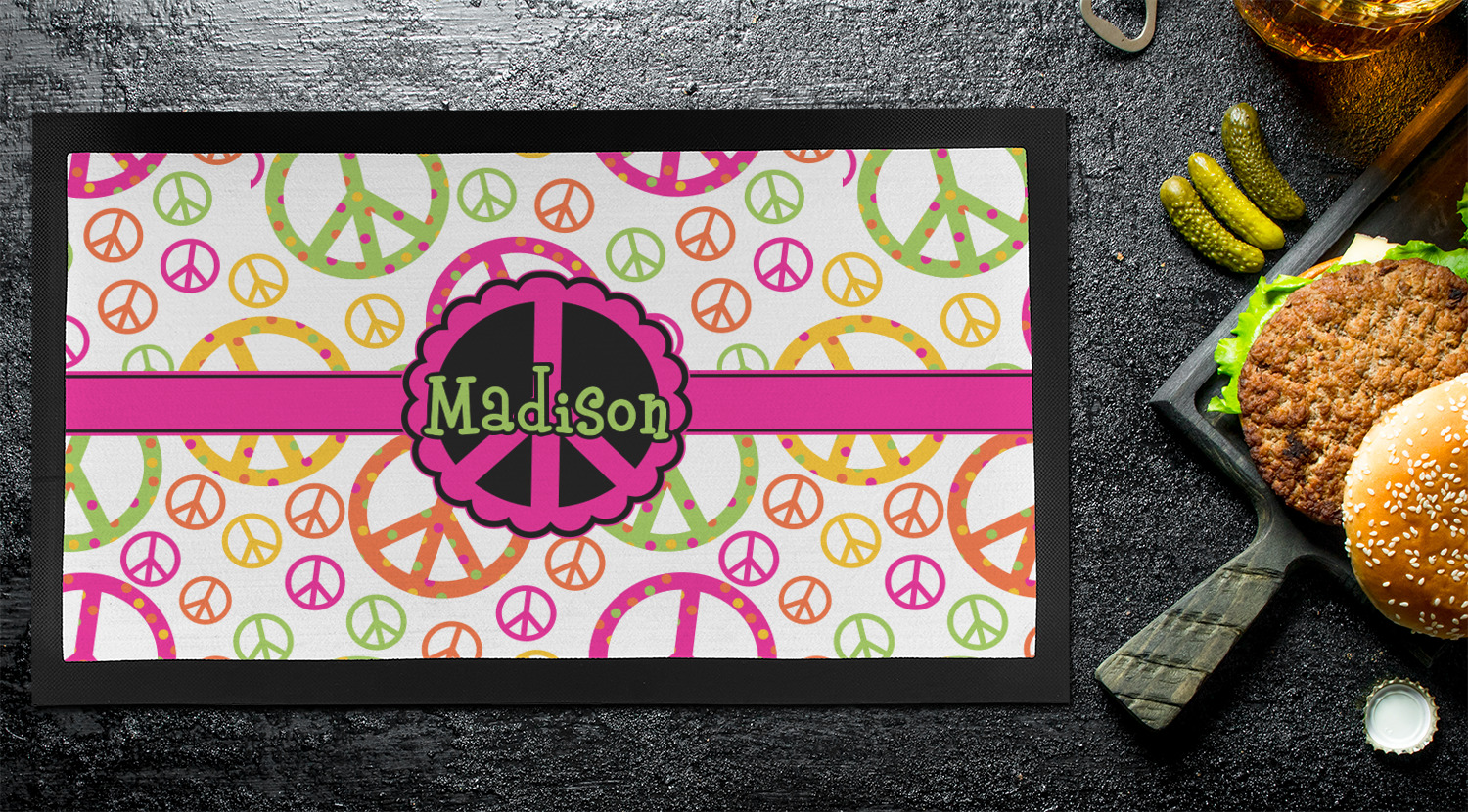 This design is totally groovy and will let the little hippie chick in you shine. Our peace sign design is simply adorable and has beautiful vibrant colors of pink, orange, lime green and yellow. The larger peace signs have fun polka dots and are surrounded by smaller solid colored peace signs.