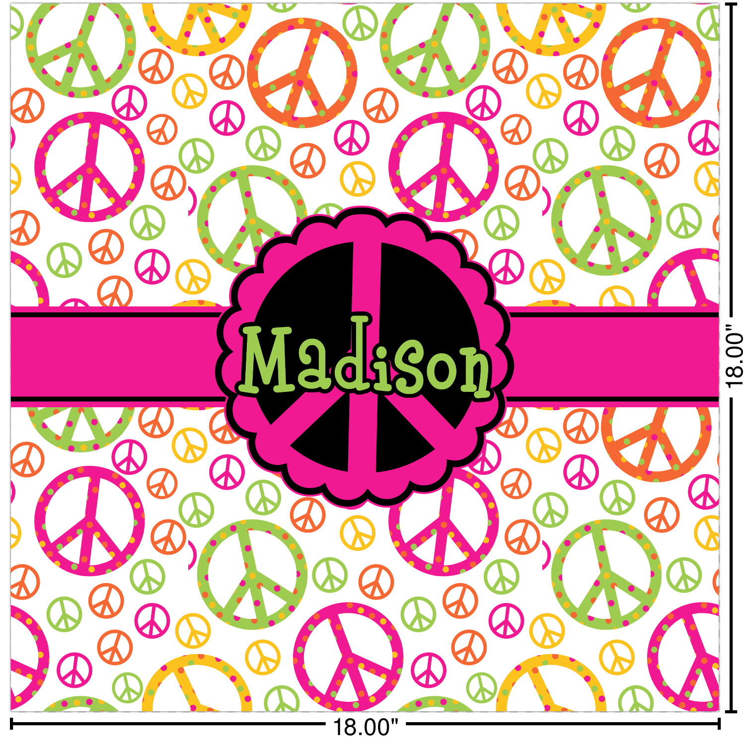 This design is totally groovy and will let the little hippie chick in you shine. Our peace sign design is simply adorable and has beautiful vibrant colors of pink, orange, lime green and yellow. The larger peace signs have fun polka dots and are surrounded by smaller solid colored peace signs.