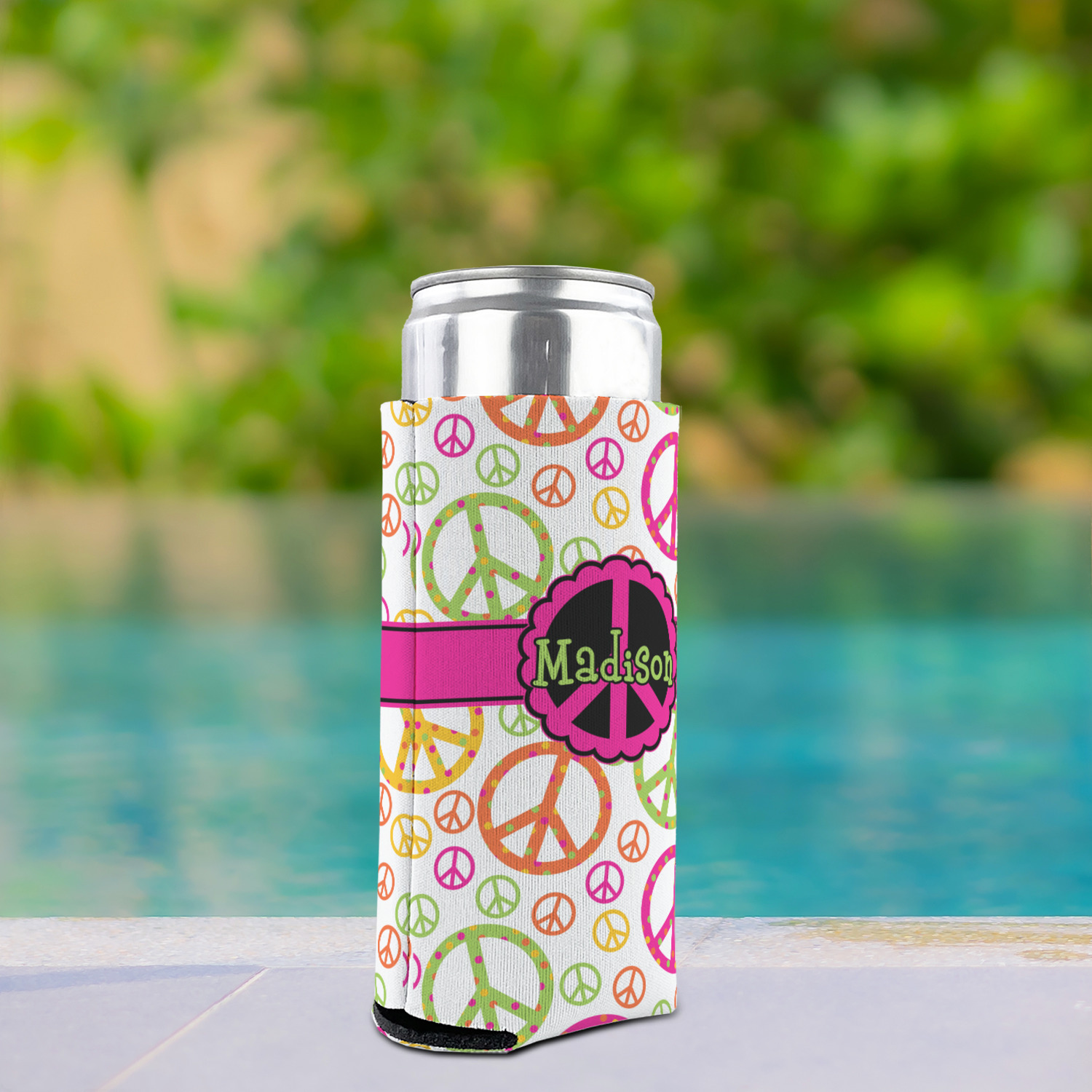 This design is totally groovy and will let the little hippie chick in you shine. Our peace sign design is simply adorable and has beautiful vibrant colors of pink, orange, lime green and yellow. The larger peace signs have fun polka dots and are surrounded by smaller solid colored peace signs.