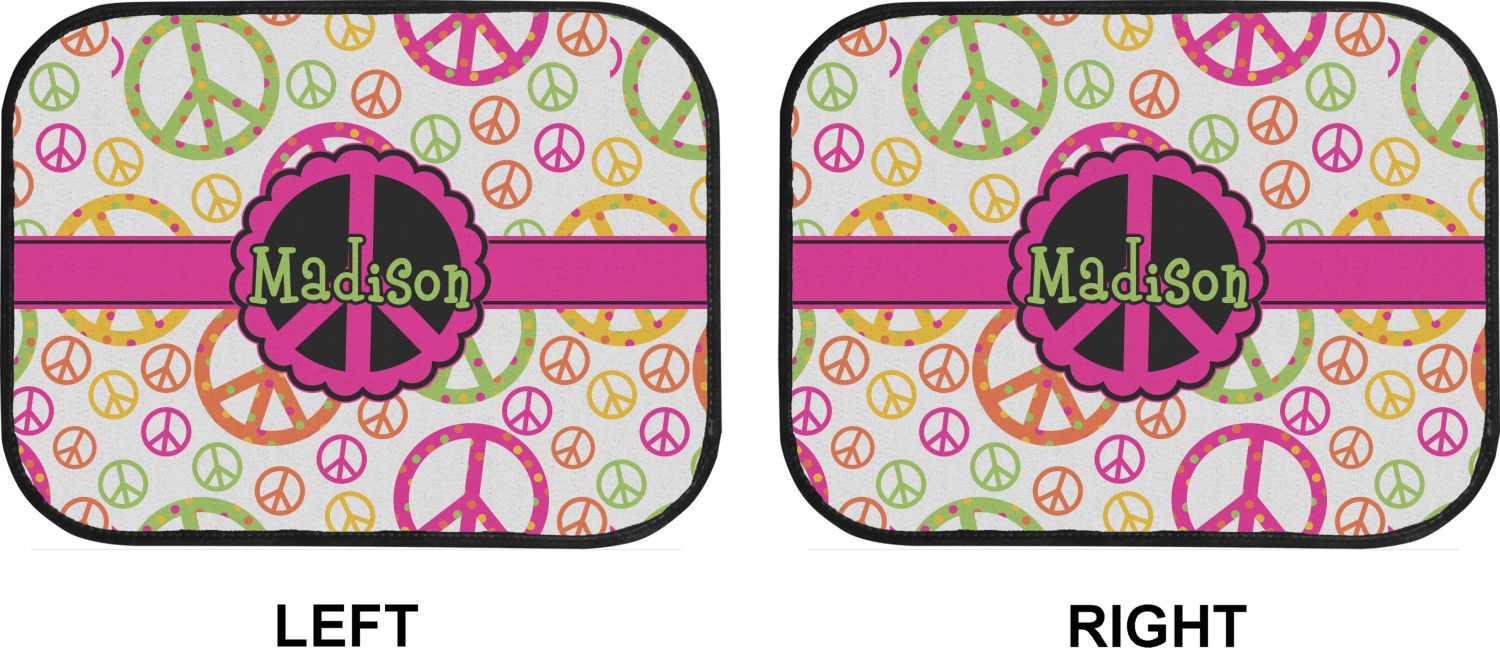We craft our auto floor mats mats from polyester, apply a black finish to the edges, and lined at the bottom to prevent slippage. These mats protect your floors from grass, mud, and any accidental spills. We display your personalized design on the front face of each mat. The sizes of these car floor liners are standardized to provide a versatile fit for all vehicles. The front rows car mats measure at 17 by 26.5 inches, while the back rows measure at 17 by 13 inches. We sell three packages of car floor mats. You can purchase a pair of front row car mats, a pair of back row car mats, or a set of front row and back row car mats. To make an informed purchase, we recommend measuring the surface area of your car floors.