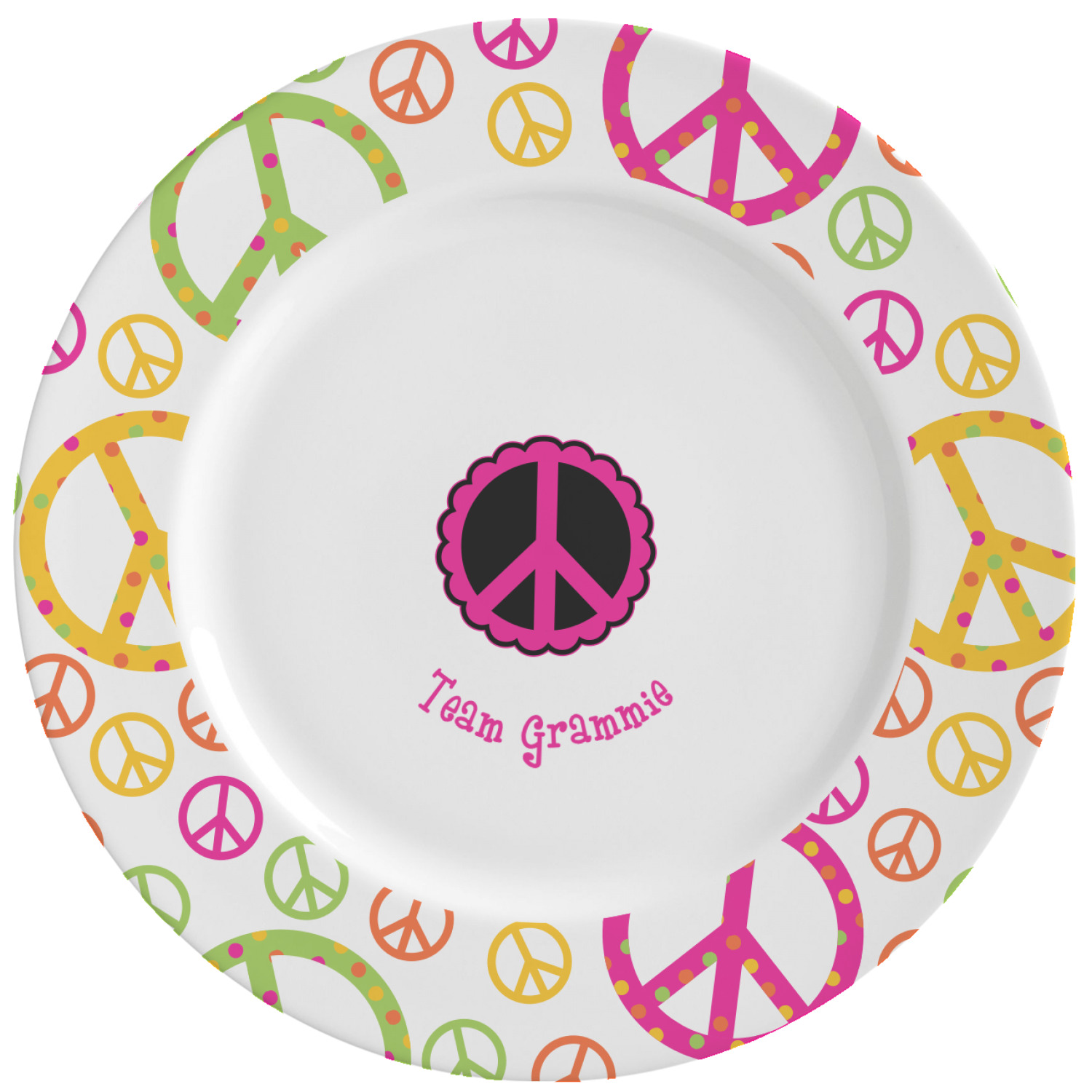 With this custom dinner plate, your have the option of personalizing the rim with an attractive pattern, and then displaying a name, graphic, or text in the center of the plate, against a white background. The exterior of this plate is also the same classic, white color. A glaze coats your plate, making your vividly colored design seem even more vibrant.