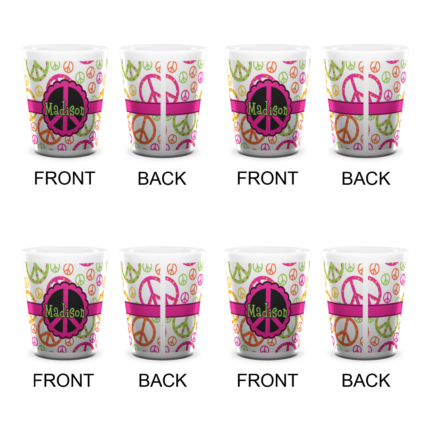 Made from ceramic these shot glasses are printed in full color with the design of your choice. These are a standard 1.5oz size and stand 2.25" tall. Available in a full white ceramic or a two-tone with a black color inside the shot glass. Buy a single or a set of 4, all of which can be designed separately to get you just what you want and need.