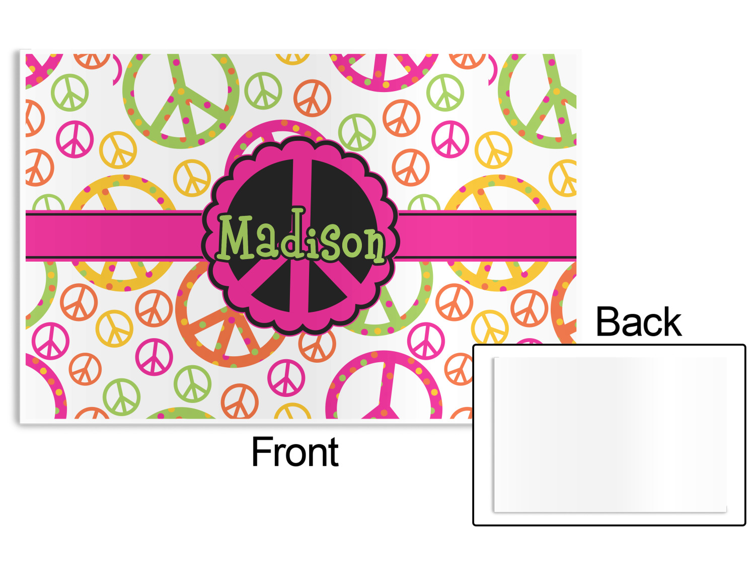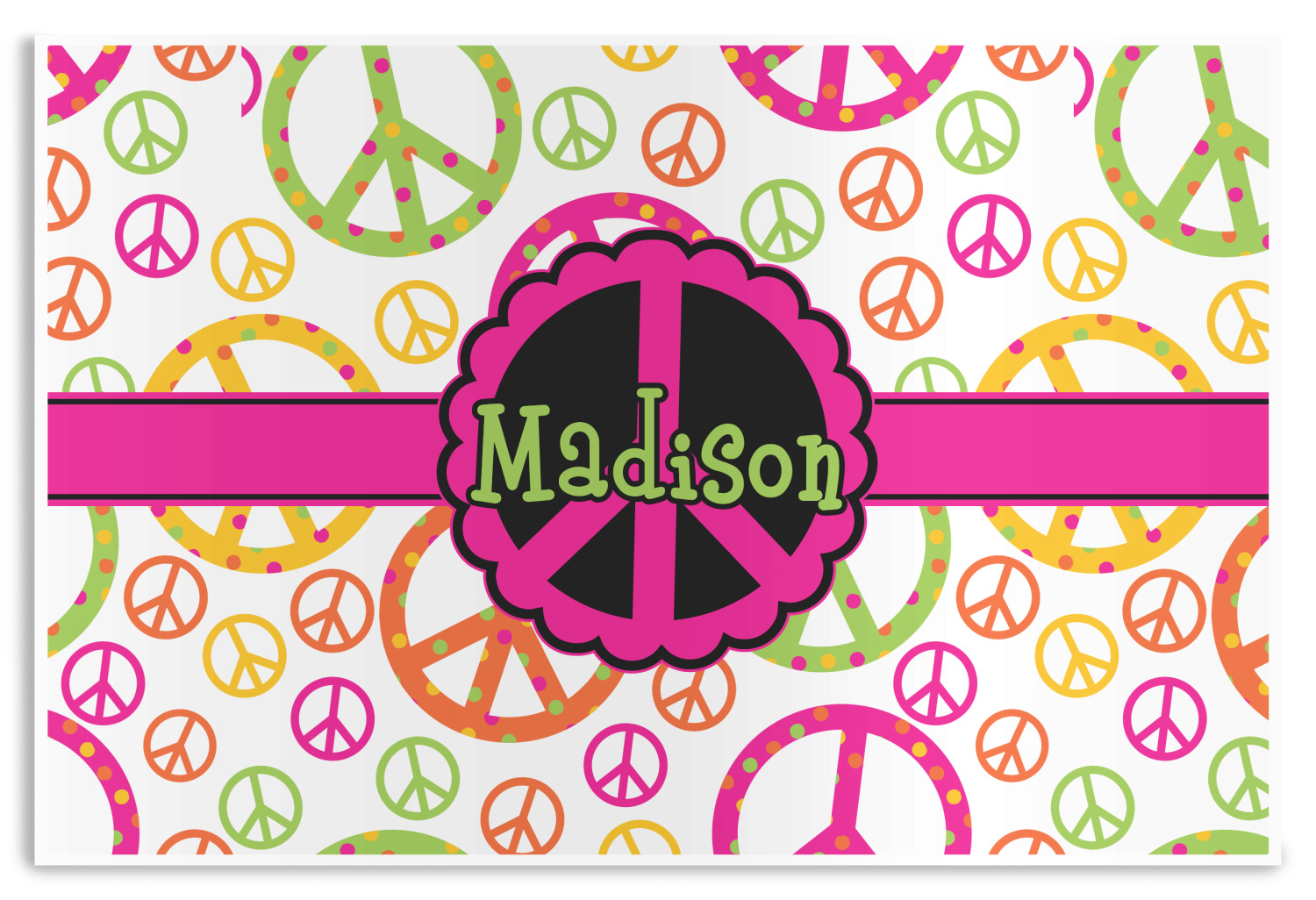 This design is totally groovy and will let the little hippie chick in you shine. Our peace sign design is simply adorable and has beautiful vibrant colors of pink, orange, lime green and yellow. The larger peace signs have fun polka dots and are surrounded by smaller solid colored peace signs.
