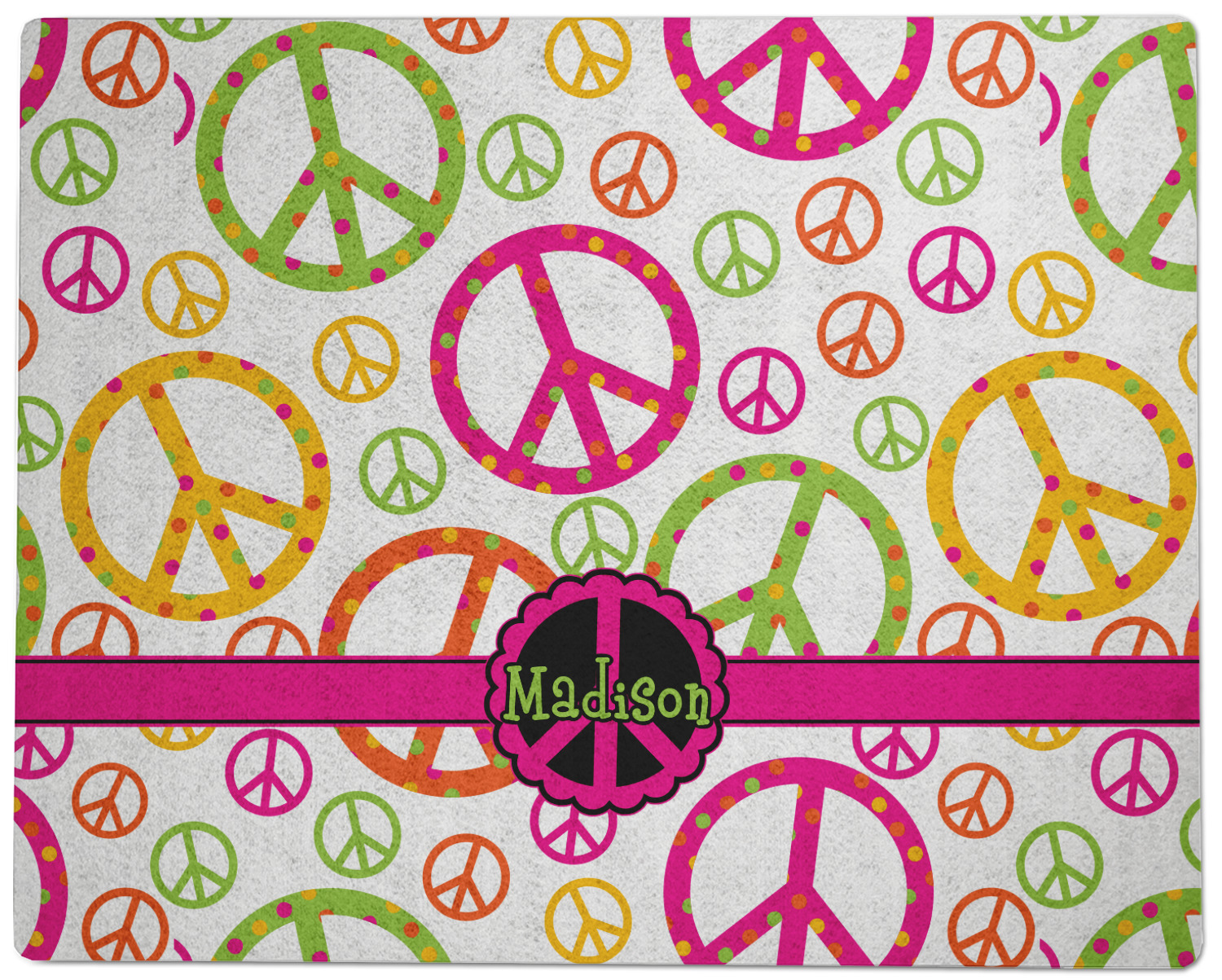 This design is totally groovy and will let the little hippie chick in you shine. Our peace sign design is simply adorable and has beautiful vibrant colors of pink, orange, lime green and yellow. The larger peace signs have fun polka dots and are surrounded by smaller solid colored peace signs.