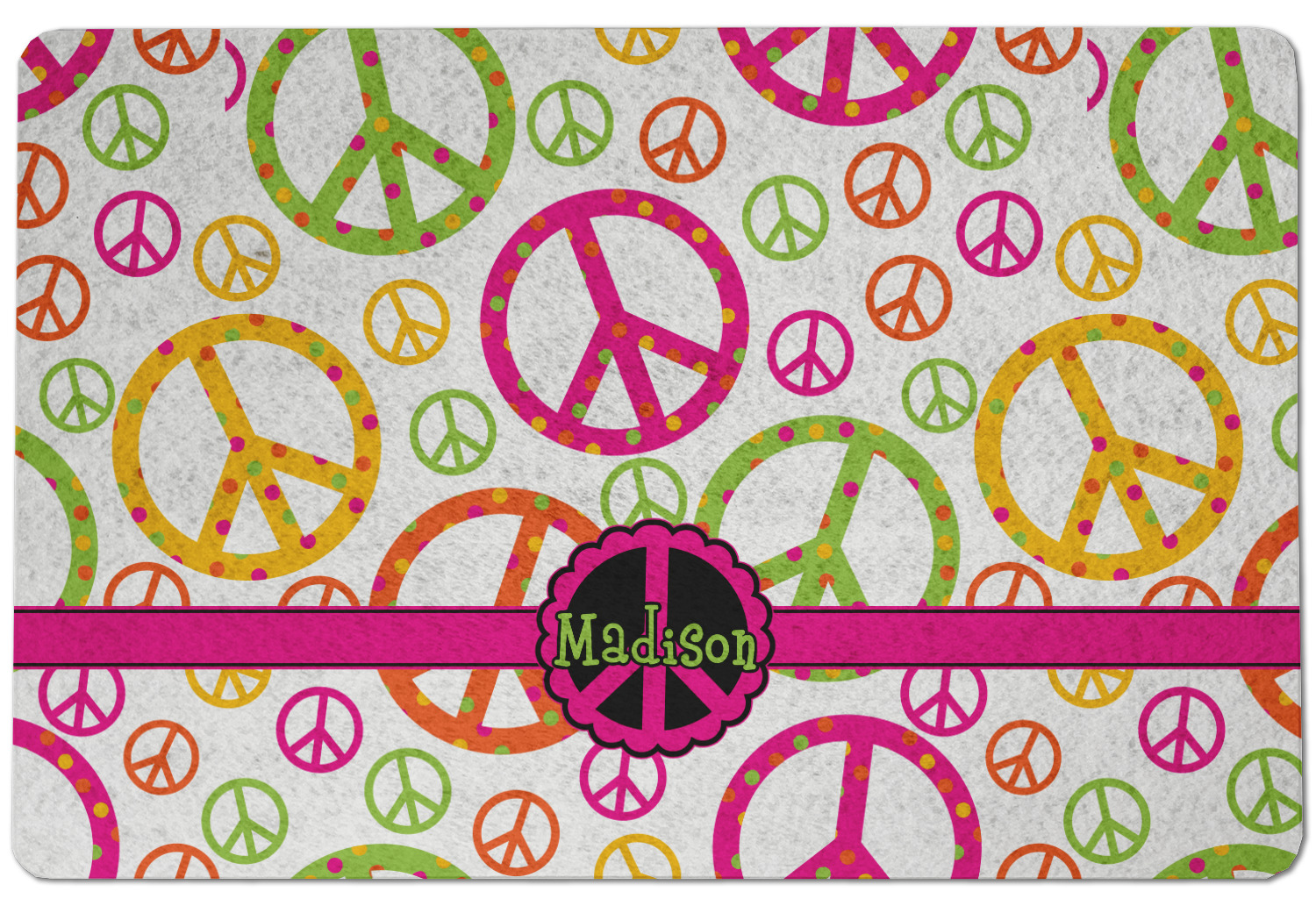 This design is totally groovy and will let the little hippie chick in you shine. Our peace sign design is simply adorable and has beautiful vibrant colors of pink, orange, lime green and yellow. The larger peace signs have fun polka dots and are surrounded by smaller solid colored peace signs.
