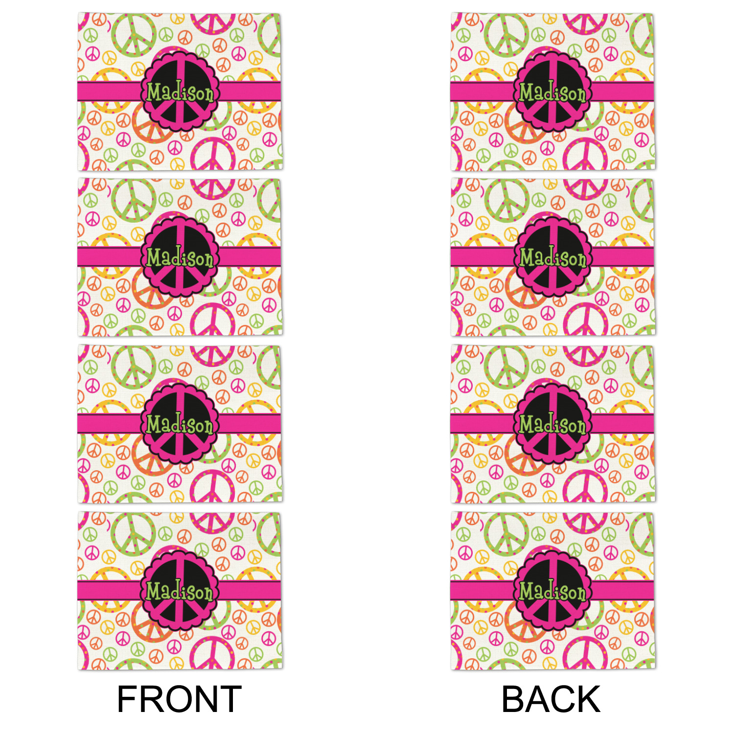 This design is totally groovy and will let the little hippie chick in you shine. Our peace sign design is simply adorable and has beautiful vibrant colors of pink, orange, lime green and yellow. The larger peace signs have fun polka dots and are surrounded by smaller solid colored peace signs.