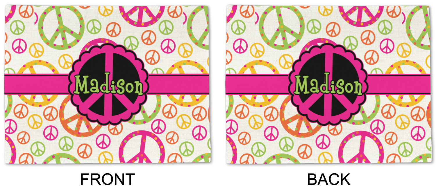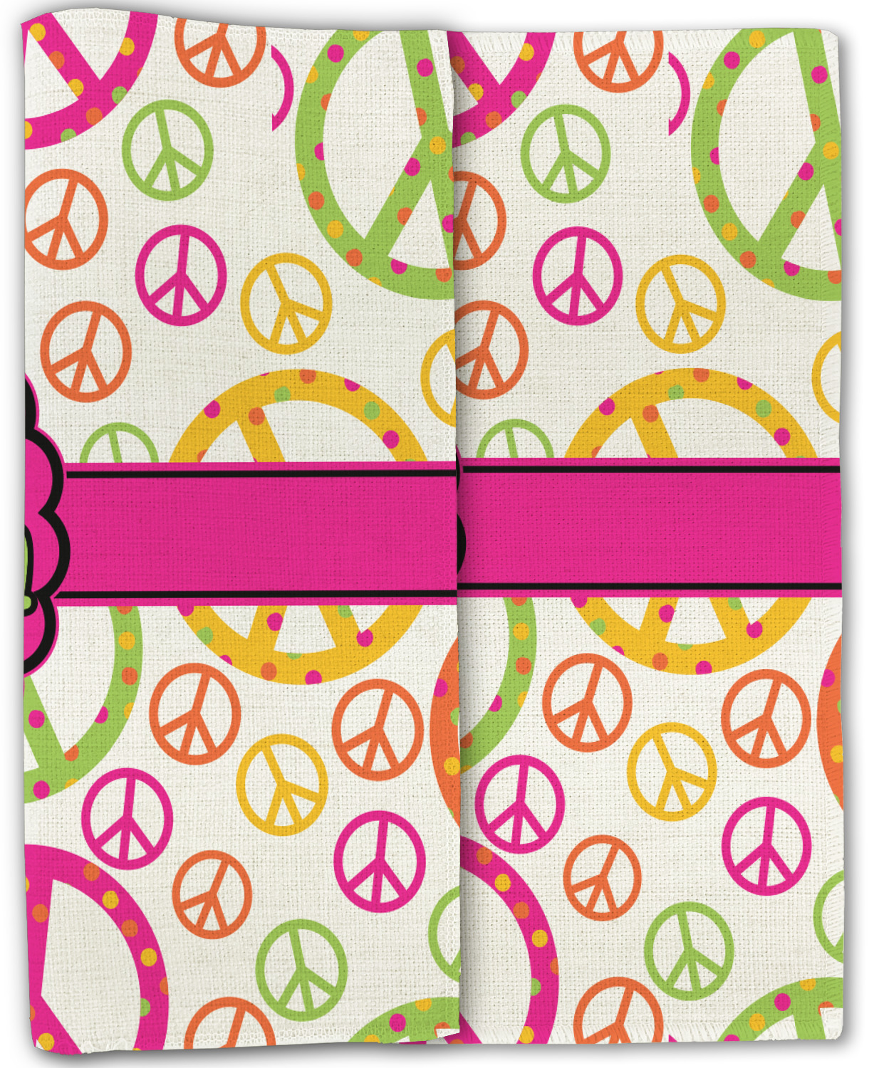 This design is totally groovy and will let the little hippie chick in you shine. Our peace sign design is simply adorable and has beautiful vibrant colors of pink, orange, lime green and yellow. The larger peace signs have fun polka dots and are surrounded by smaller solid colored peace signs.