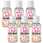 This design is totally groovy and will let the little hippie chick in you shine. Our peace sign design is simply adorable and has beautiful vibrant colors of pink, orange, lime green and yellow. The larger peace signs have fun polka dots and are surrounded by smaller solid colored peace signs.