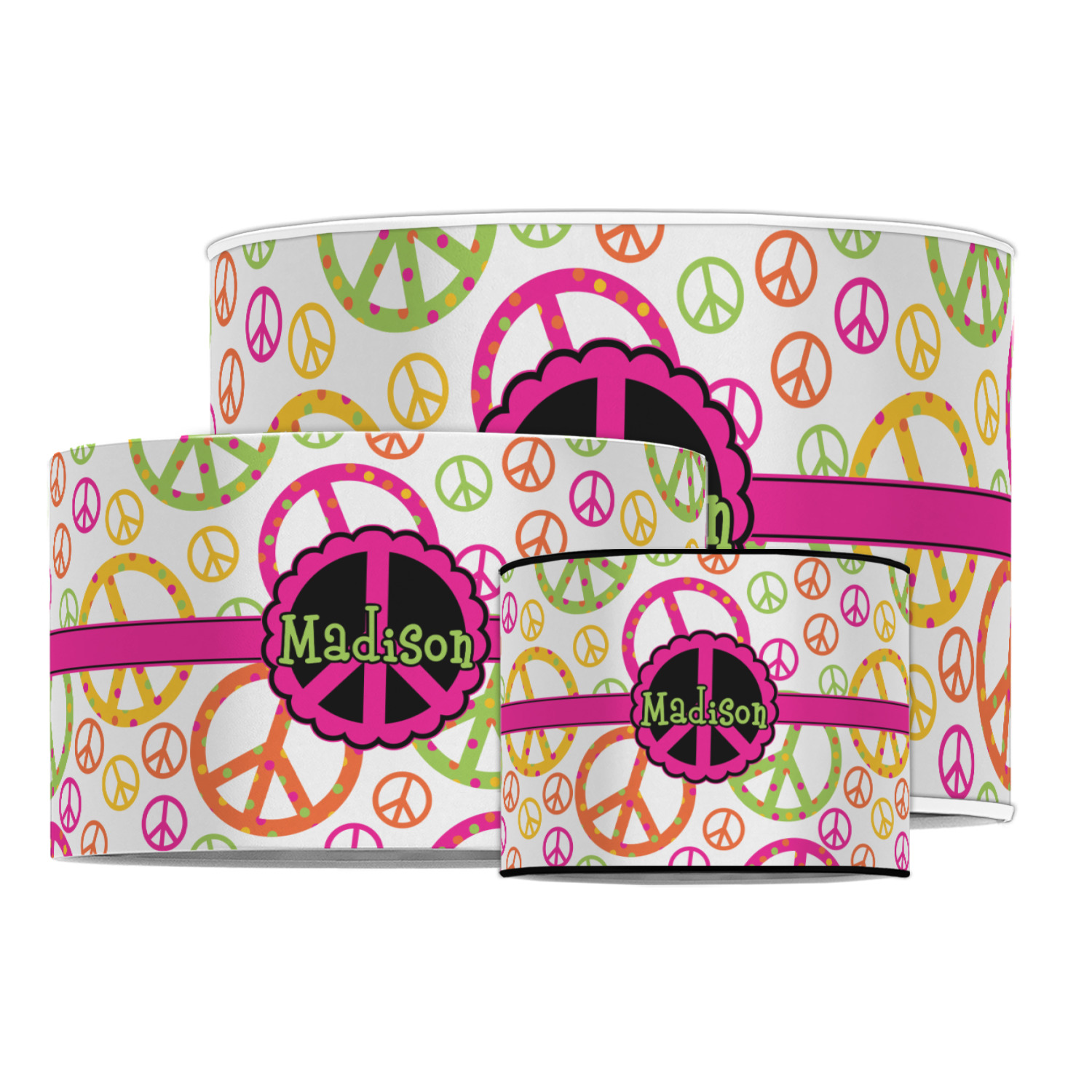 Our personalized drum lamp shades are available in 2 different materials: Poly-film or fabric. Poly-film lamp shades come with the option of white or black border trims to best match your customized design. Fabric lamp shades are finished with a rolled edge for a clean modern look.