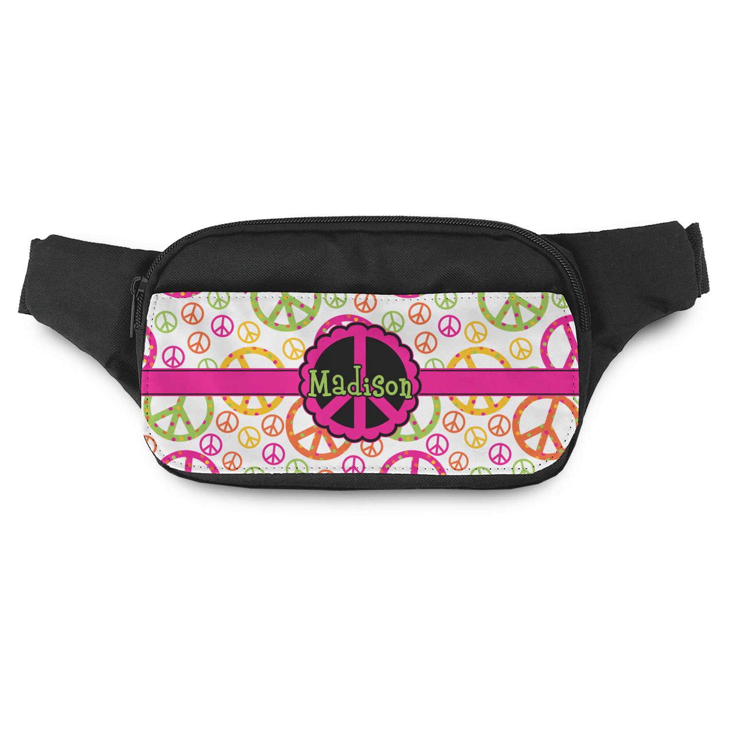 This is a unisex fanny pack - suitable for both men & women. The front flap is printed in full color with your design. You can add a photo, logo or any image that you would like. We offer a number of design templates that can be customized by you to your liking.