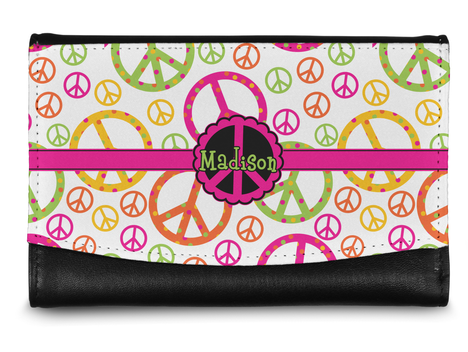 The compact size of this wallet - 5.5in wide, 3.5in tall and 0.75in thick when folded - makes it perfect to hold in hand and small enough to fit in a clutch or a normal size purse. The outside flap is customized with your choice of artwork and closes with a snap closure - with two different snaps to allow it to be adjusted when storing more items - to securely fasten the flap.