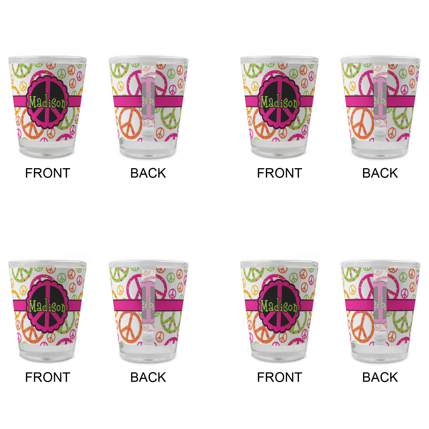 Made with frosted glass, these shot glasses are printed in full color with the design of your choice. They are a standard 1.5oz shot glass and are 2.4" tall. The print is wrapped around the shot glass in a full wrap and boldly displays your customization.
