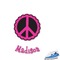 The design has a classic hot pink ribbon trimmed with black, and the label is a beautiful scalloped peace sign in black and hot pink. Personalize of your choice is done in a beautiful lime green color outlined in black.