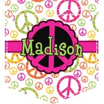 This design is totally groovy and will let the little hippie chick in you shine. Our peace sign design is simply adorable and has beautiful vibrant colors of pink, orange, lime green and yellow. The larger peace signs have fun polka dots and are surrounded by smaller solid colored peace signs.
