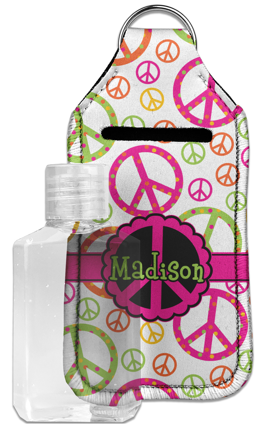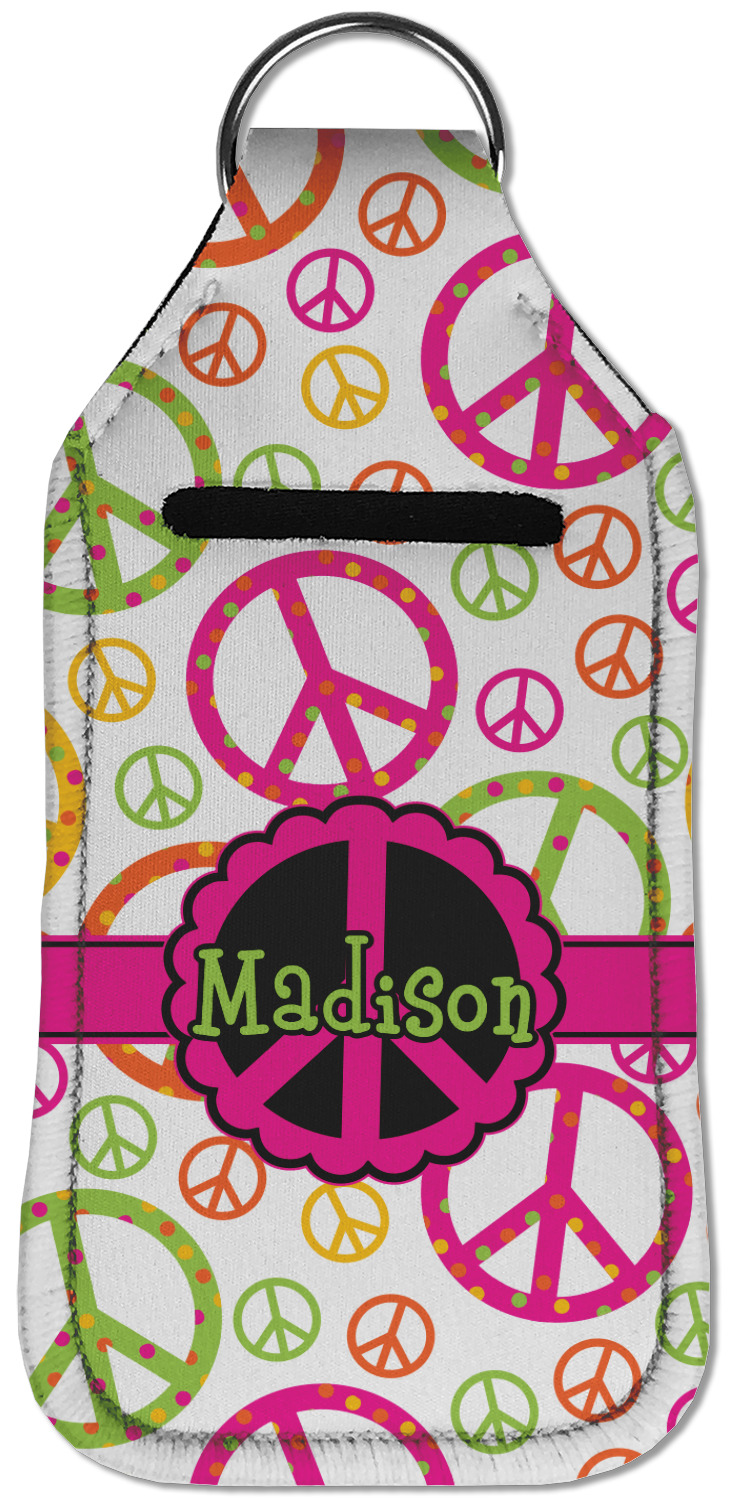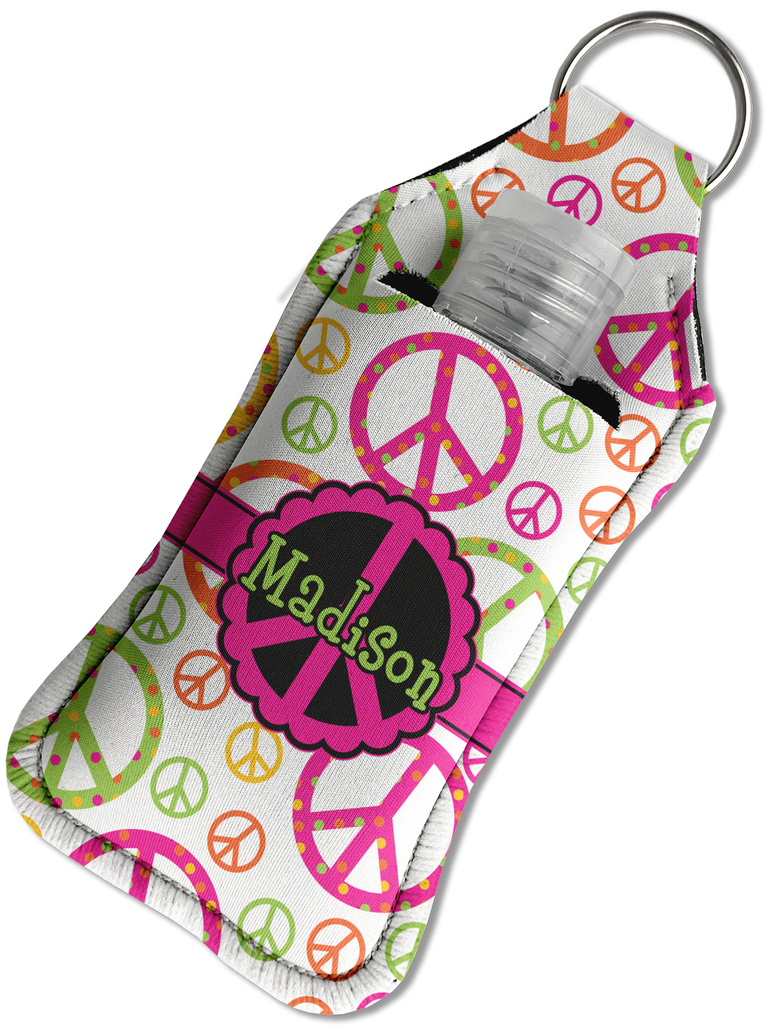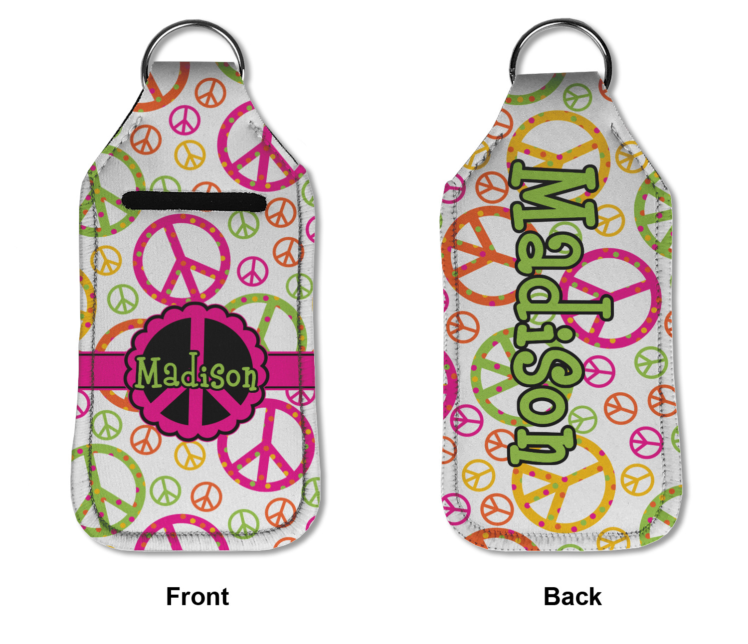 Each hand sanitizer holder comes with its own empty travel-sized, refillable hand sanitizer sure to fit snug in your customized sanitizer case! Our hand sanitizer cases are a durable, yet soft neoprene material sure to last any daily activities or travel agenda. Customize and personalize a hand sanitizer bottle holder with one of our two sizes - small (4.25" x 2.25") or large (5.5" x 2.5"). Each travel sanitizer holder comes with a keyring for attachment on bags, keys, or more!